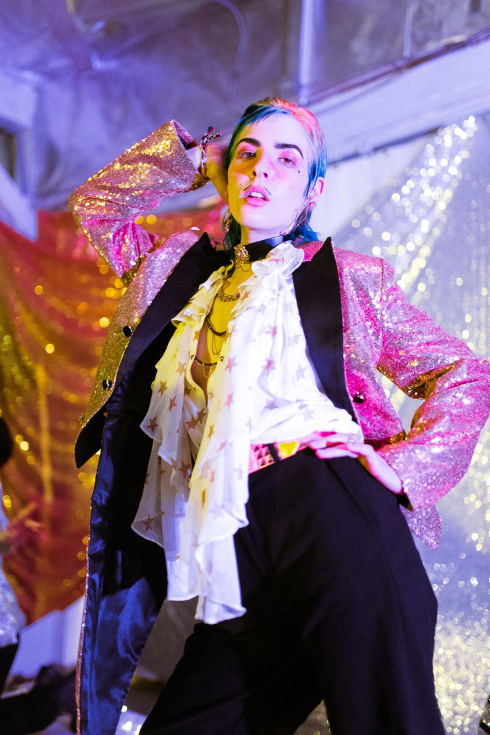 At the release party, Electra performed "Flamboyant" live, as well as their workaholic anthem "Career Boy," complete with two backup dancers and full choreo. Having recently spent a weekend in Las Vegas creating tons of new music for their new album, including the crowd-sourced single "2 Fast," Electra is sure to pack the next few months with fresh, unapologetically queer material.
