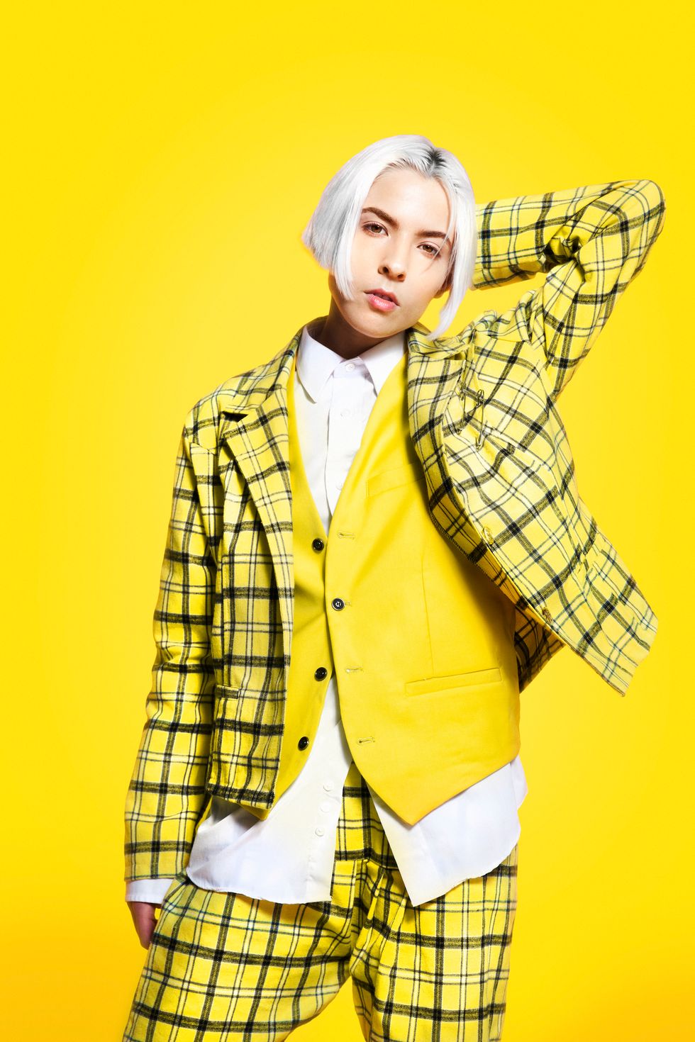 DE: It was really cool how you had suggested getting an oversized costume, so that immediately when I put it on it felt comfortable and boyish and gave me this like boy band vibe or something that was super easy to play with!