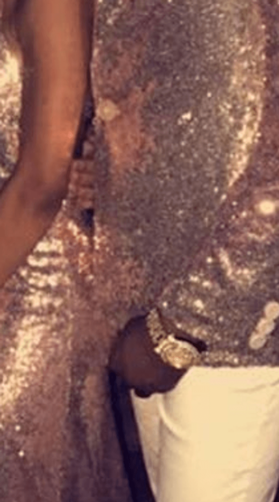 Here he is on Drizzy's gram, wearing a full, ill-advised matching pink sequin suit to go that extra mile, but you can see there is no light in his eyes. None at all.