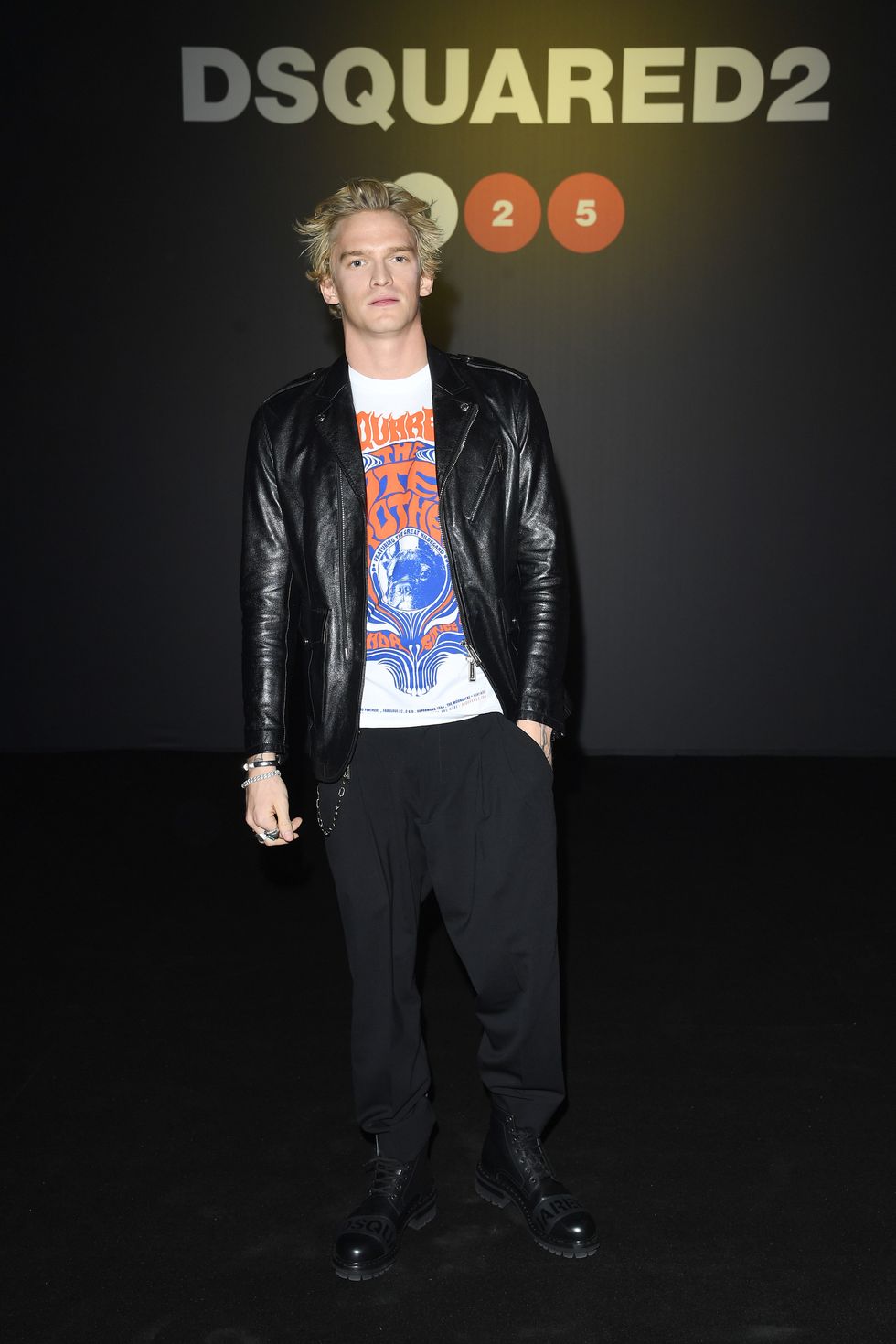 Kicking off the menswear schedule in Milan, designers Dean and Dan Caten were in a celebratory mood as they staged an epic 25th anniversary show for their Dsquared2 brand. A montage of past shows and collections was screened prior to the first model's outing, including the iconic Fall 2003 airplane show opened by Naomi Campbell.