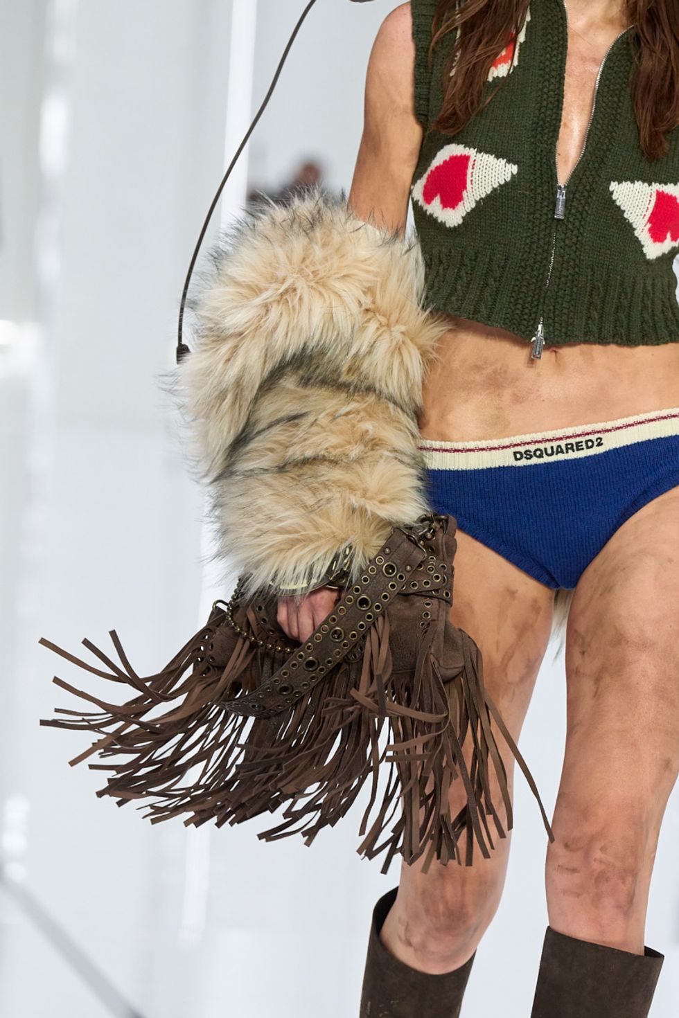 May 13, 2024“No one has had a sexy it-bag since the early aughts,” says Dean and Dan Caten of DSQUARED2. “And this one oozes ‘got to have it.’” The twinning fashion designers’ new Gothic Belt Bag takes a stab at filling the coveted it-bag slot, inspired by oversized metal belt buckles worn on rock legends’ waists. First debuted in two sizes for Fall 2023, the bag returned for Spring 2024 and after for Fall 2024 with new colors, materials, and with a new mini size. Hand-enameled buckles with “DSQUARED2,” textured leather, studs and eyelets round out the gothic rock references.