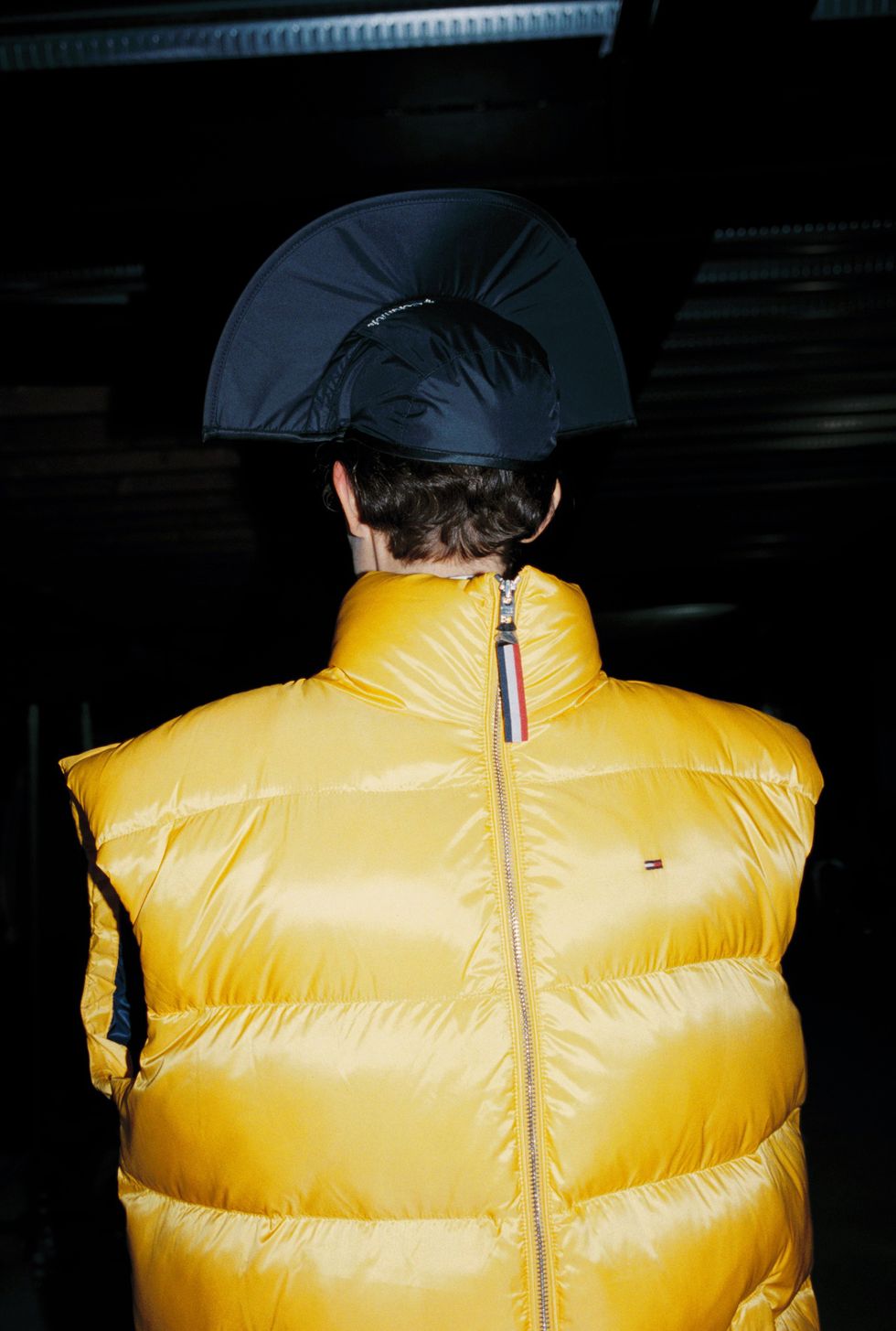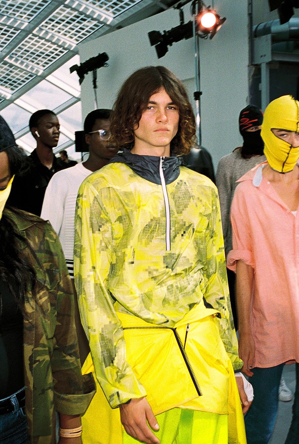 Lantink's AFW presentation was interrupted by a swarm of pedestrians, who filled the catwalk iin typical street clothes. They were all rushing, furiously bumping into each other — crazed and on a mission to nowhere — carrying giant shopping bags. This, paired with Enya's "Sail Away" as a soundtrack, offered tongue-in-cheek entertainment in the context of a fashion presentation, but doubled down on Lantink's greater, more serious message. "It was a reflection of the widely depressed consumer behavior," he says. "Looking for as much clothes as possible for a cheap price just to get that high."