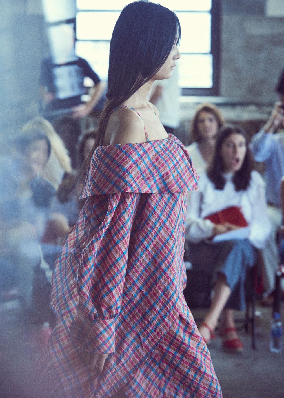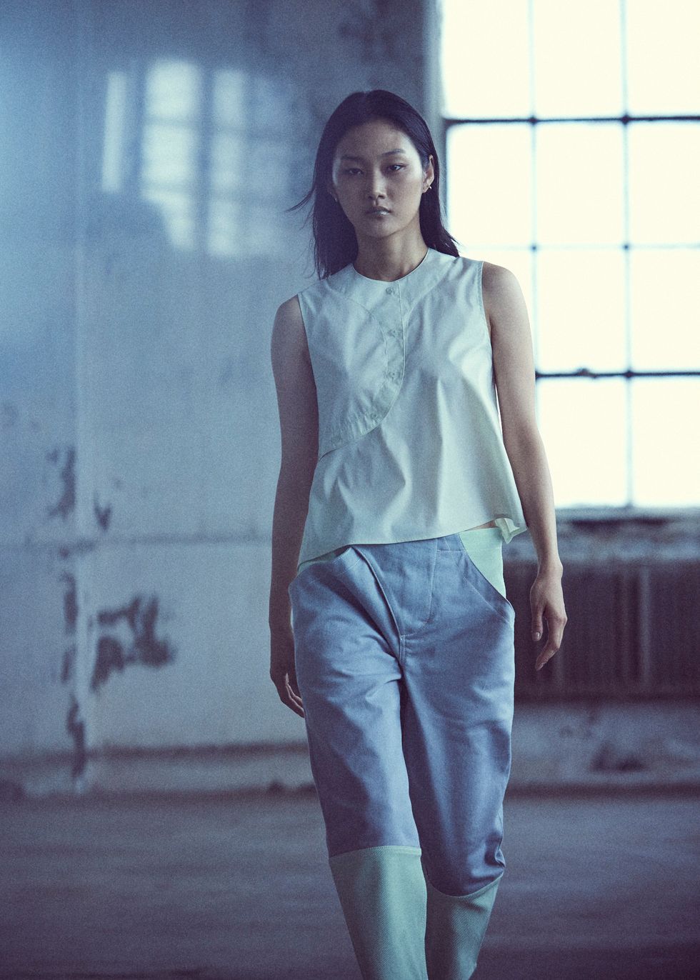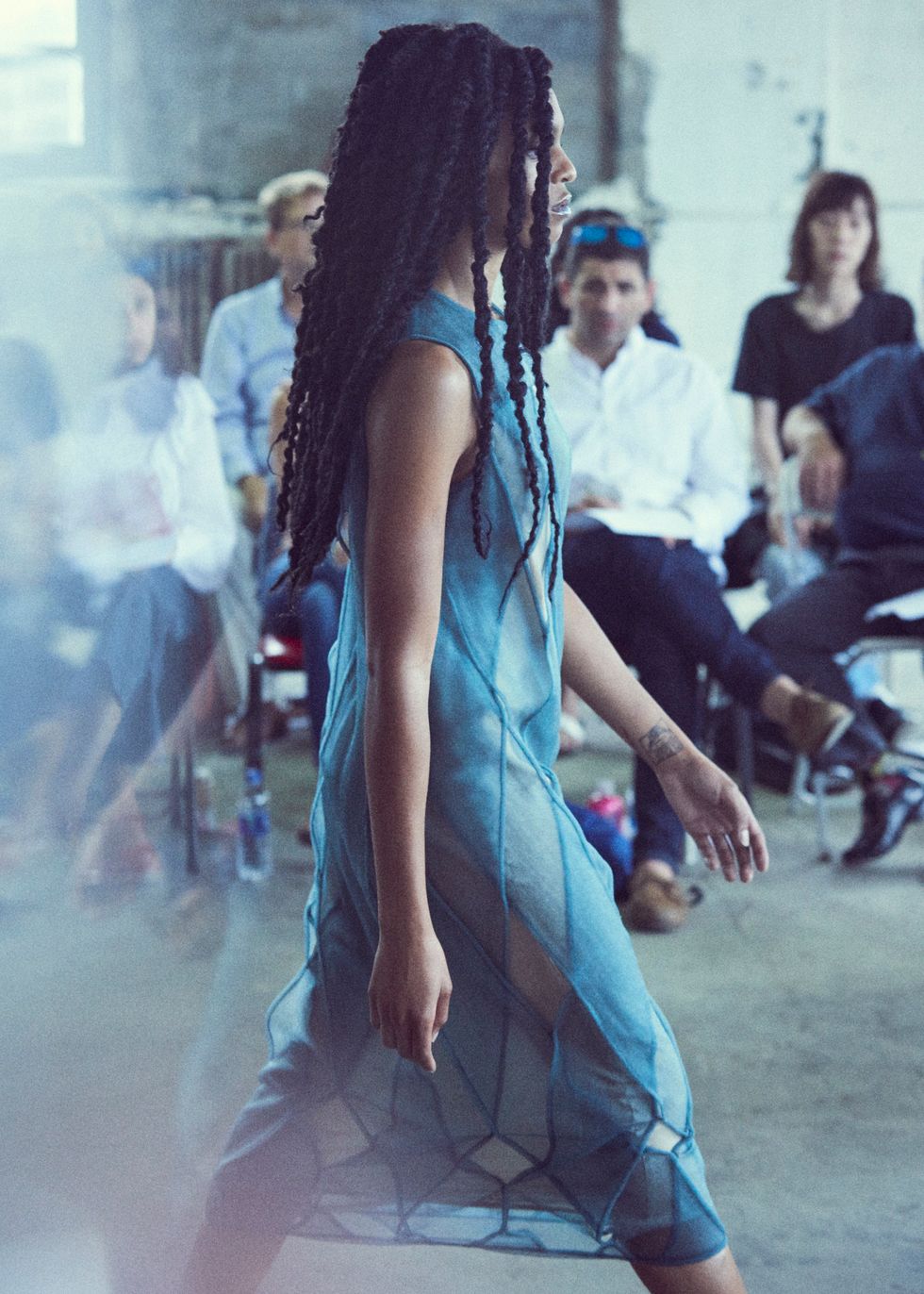 Eckhaus Latta's spring 2019 collection, shown on the top floor of a Bushwick warehouse, was light, unfussy, and so lovely I could have cried. Designers Mike Eckhaus and Zoe Latta expanded upon well-worn brand standards, dip-dying denim and transforming knits into feather-light flared pants and slip dresses.