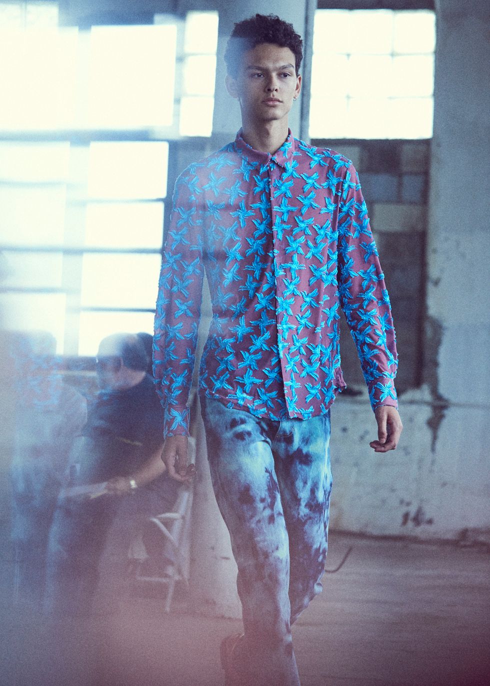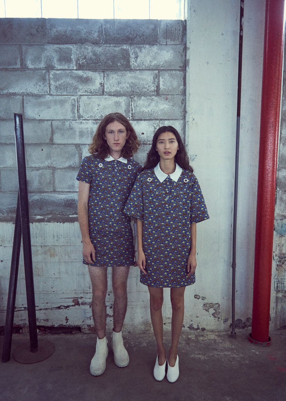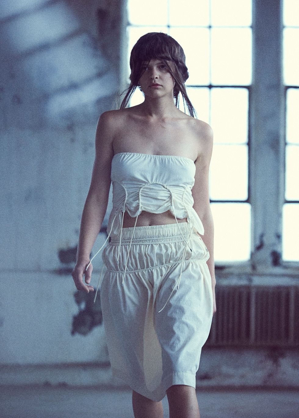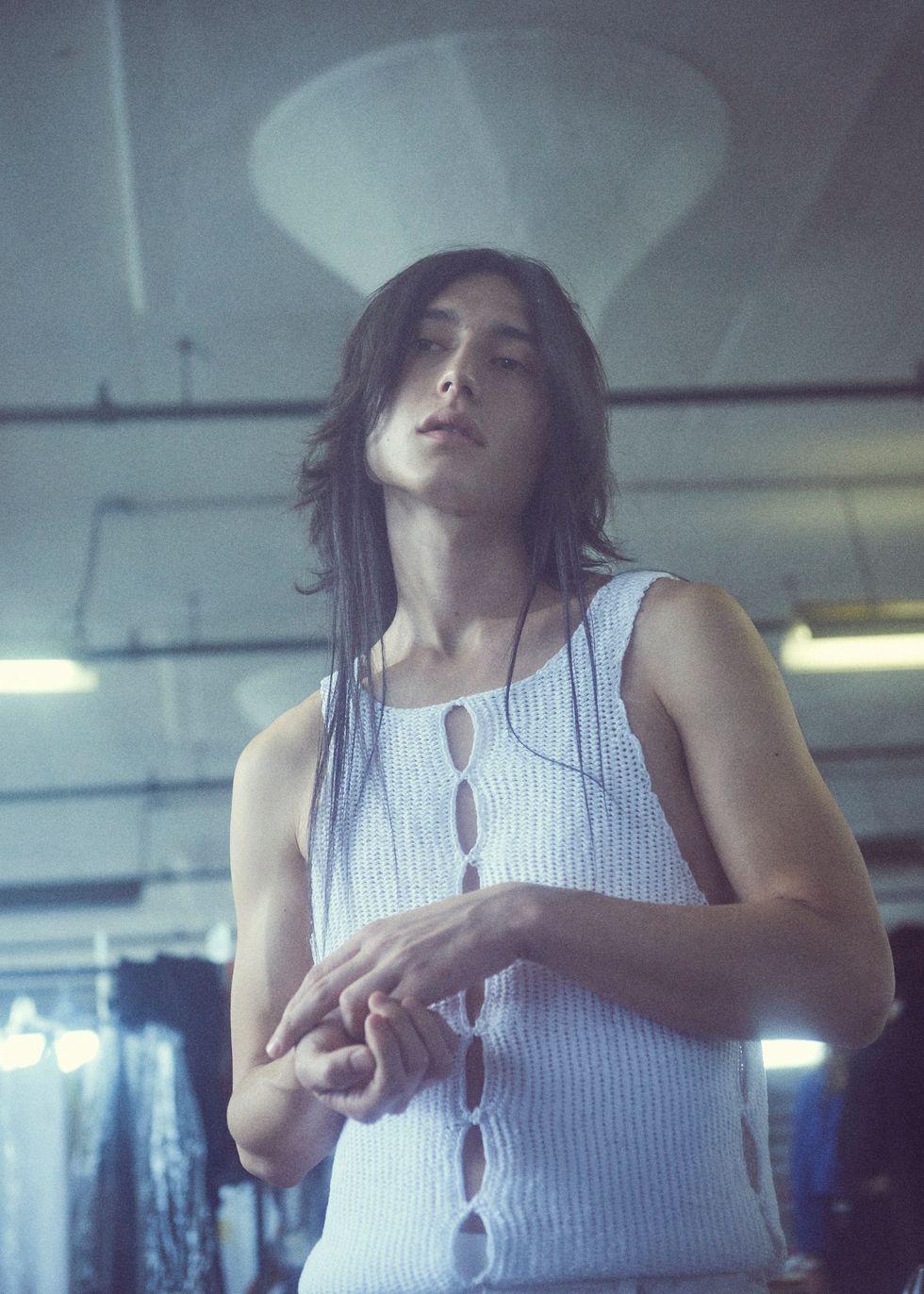 Eckhaus Latta's spring 2019 collection, shown on the top floor of a Bushwick warehouse, was light, unfussy, and so lovely I could have cried. Designers Mike Eckhaus and Zoe Latta expanded upon well-worn brand standards, dip-dying denim and transforming knits into feather-light flared pants and slip dresses.
