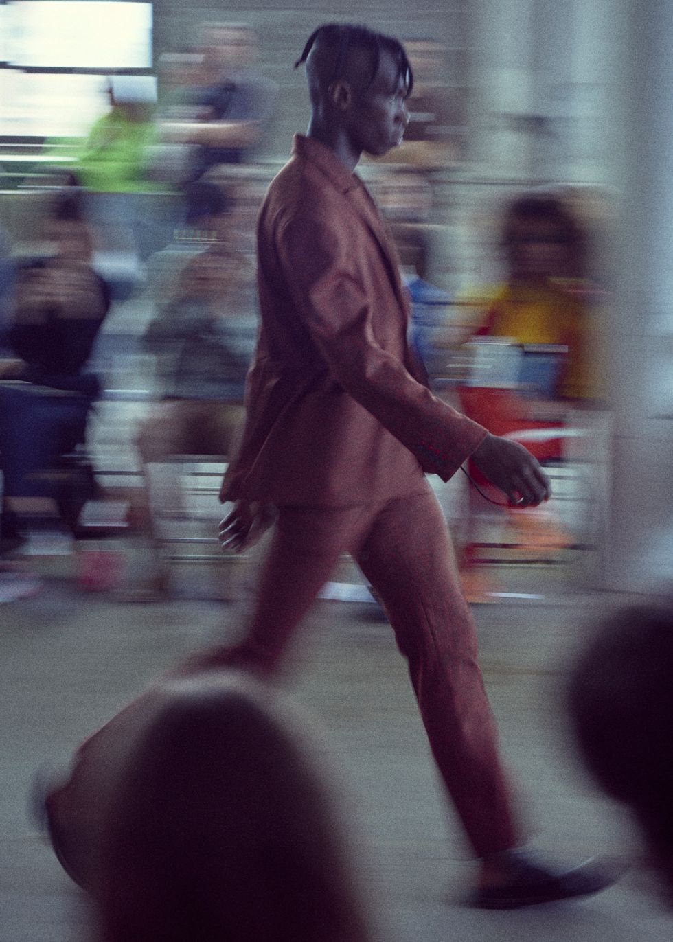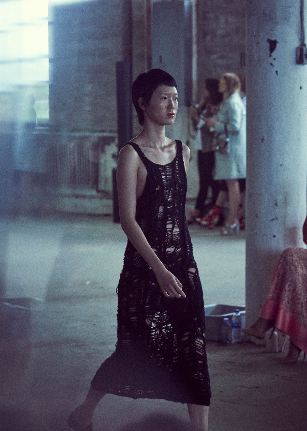 Eckhaus Latta is known for their casting (this season by Rachel Chandler for Midland Agency) with shows featuring friends and art world figures. Models at Spring 2019 included brand stalwarts Paloma Elsesser, May Hong (pictures of whom were also included at the Whitney), stylist and model Thistle Brown, Lili Sumner, Selah Marley, Coco Gordon Moore, and artist Susan Cianciolo, with a bonus appearance from Mission Chinese owner Danny Bowien.