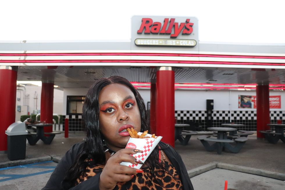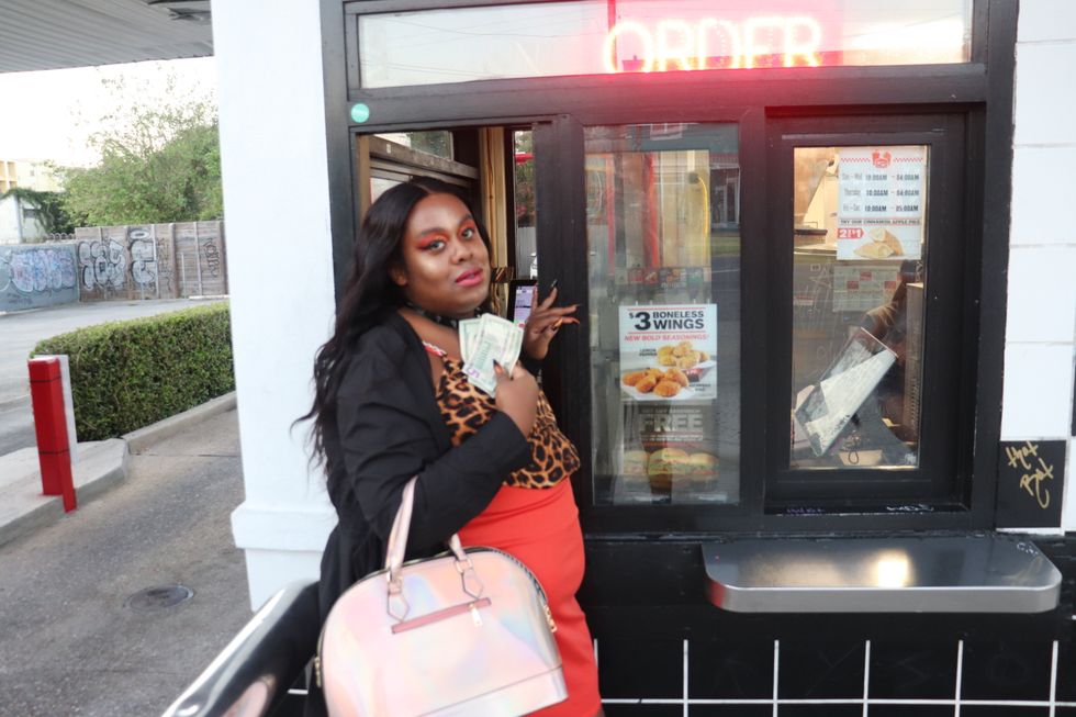 When styled right, a five-dollar shoe or a $10 dress is a full kiki and a carry, all fulfilling Edge's mission of looking and feeling hot, as viewers will be able to witness in her new video, directed and edited by Elliot Brown Jr. Not to mention, in the sweltering New Orleans heat, it's just more practical to wear fast fashion than worry about ruining designer duds. In the video, there are scenes of Edge posted up in a sexy short dress talking shit on the phone before a fun conjuring scene in a kitchen that involves a cut-up Barbie doll.