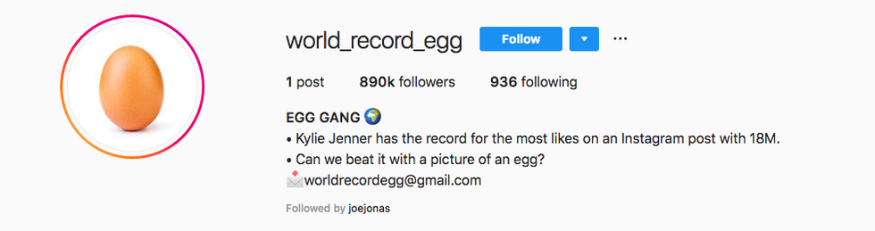 Why an egg? Well, as the profile description says, they want to see if they can beat King Kylie with just this pic. The gang posted the single photo on January 4th, and now it has over 13.6 million likes. The mystery egg wrote, "Let's set a world record together and get the most liked post on Instagram. Beating the current world record held by Kylie Jenner (18 million)! We got this 🙌 #LikeTheEgg #EggSoldiers #EggGang"