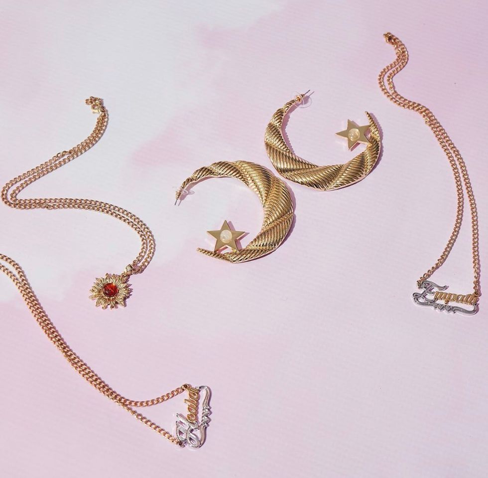 The four-piece capsule is priced between $40 and $45, and consists of a 'Healer' nameplate necklace, a pair of 'Mama Moon' hoop earrings, a 'Ray of Sunshine' necklace, and an 'Empath' sunflower pendant.