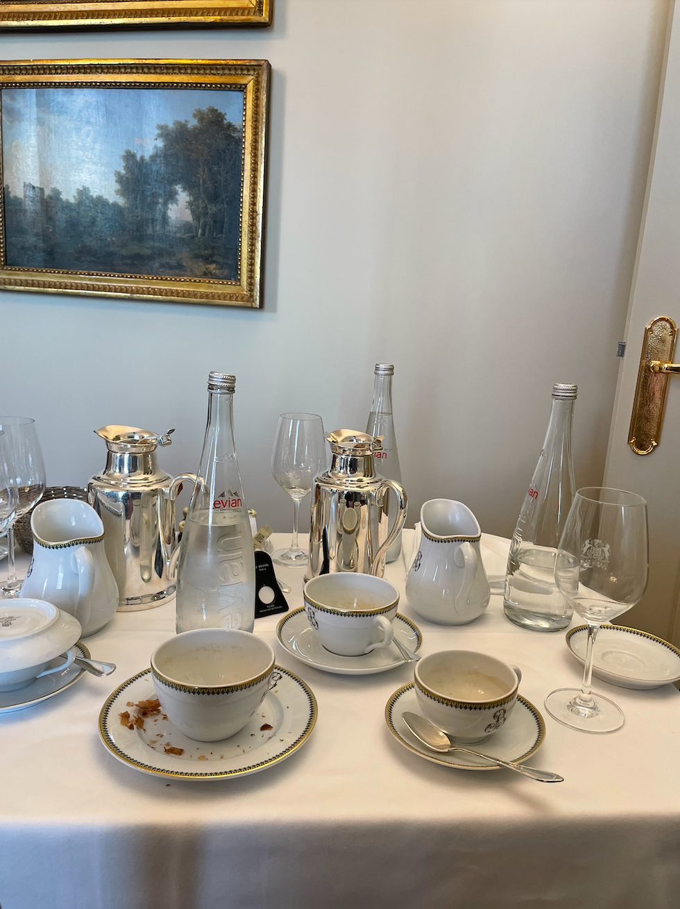 For this season's show, I decided to bring my dad back to Paris again, this time to see the show with me! So naturally on the morning of, we had to go to his favorite coffee shop. This photo is the aftermath of our espresso and chocolate croissant breakfast. Nothing fuels fashion week (and life) better than a chocolate croissant."