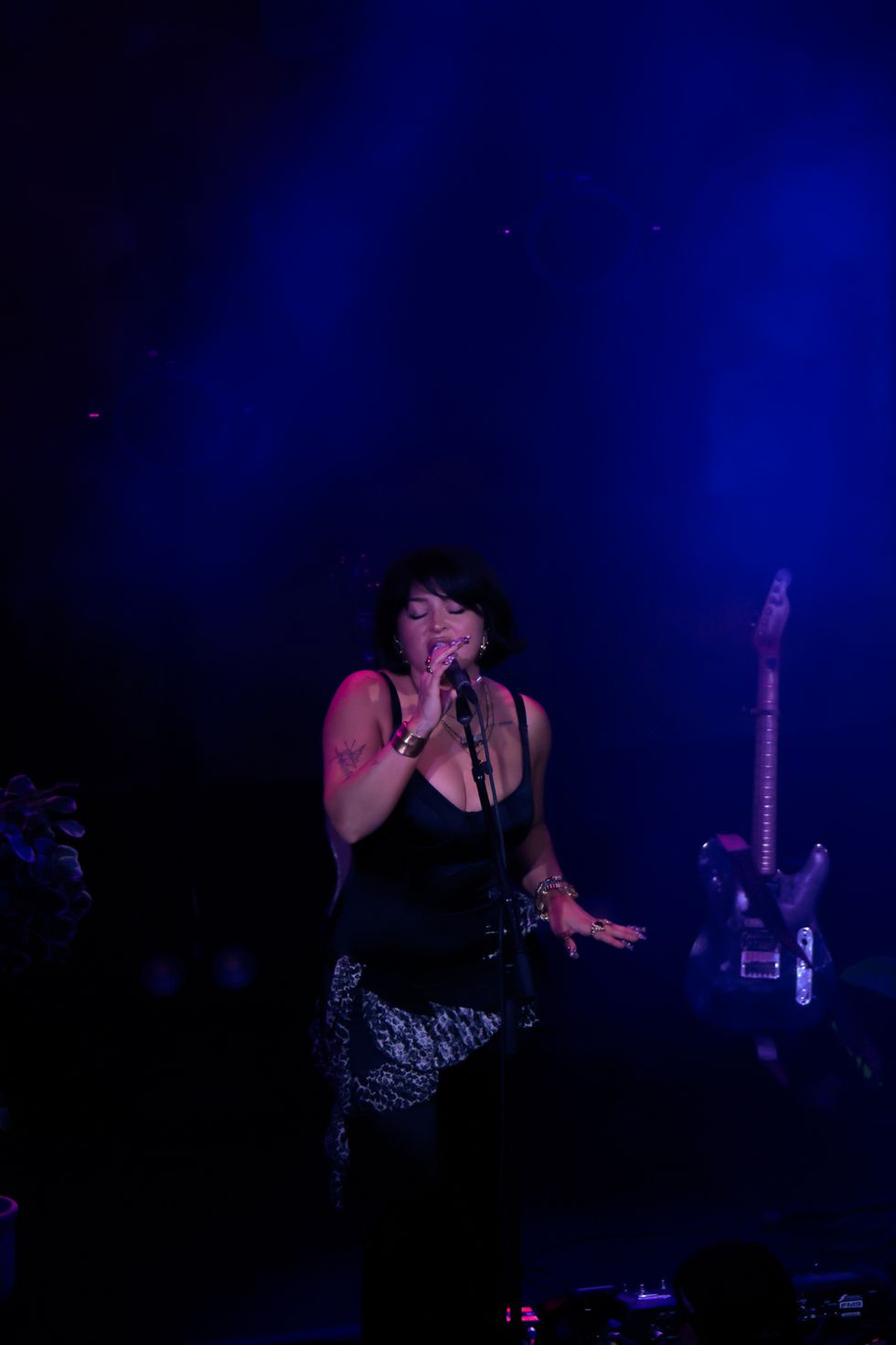 Speaking of hair: Just hours before her Bowery performance, the singer paid a visit to Francis Rodriguez at The Paint Box in Brooklyn for a massive chop, an experience that brought her to tears. “I cut 16 inches of my hair,” she tells the audience from the stage before playing her track "Dear Little Me." "Normally my hair is very curly, and today I have it styled into a cute little bob, but I actually wrote this song for my younger self who felt the constant need to straighten her hair. I felt like I was not neat or not pretty if it was frizzy or untamed or curly. I woke up every day wishing I could wake up with straight hair. I don't know how long it’s been since the last time I straightened my hair before this, which is a huge accomplishment for me. I’m healthy, healthy and happy. This song is for my younger self, who felt that she wasn’t quite worthy the way she was. This is a letter to her to tell her that she is.”