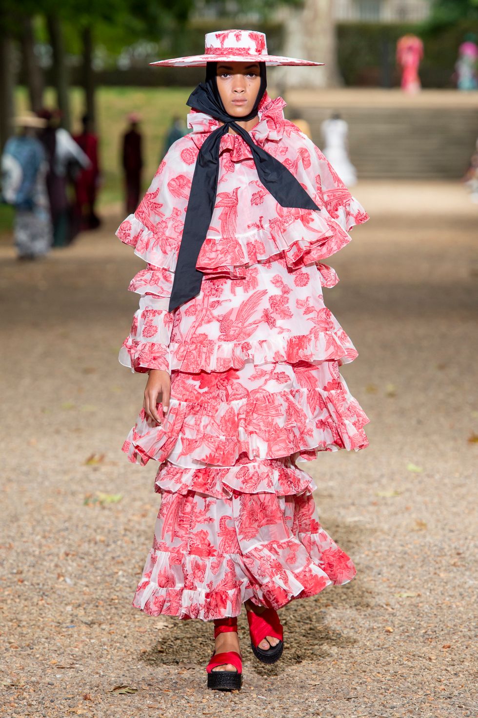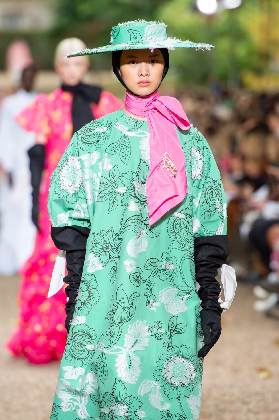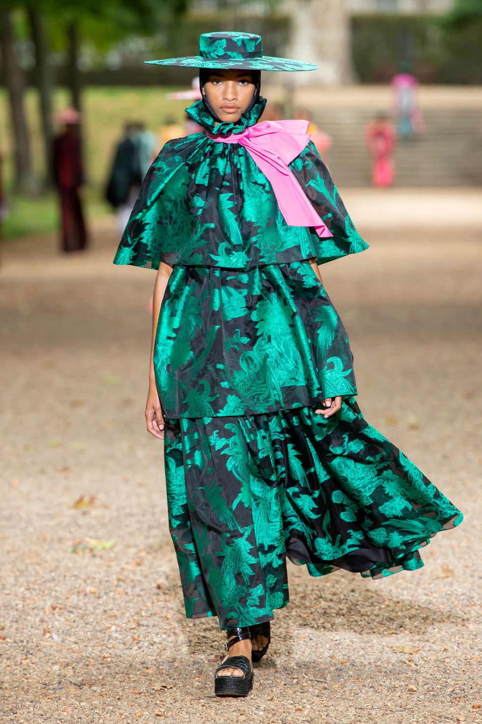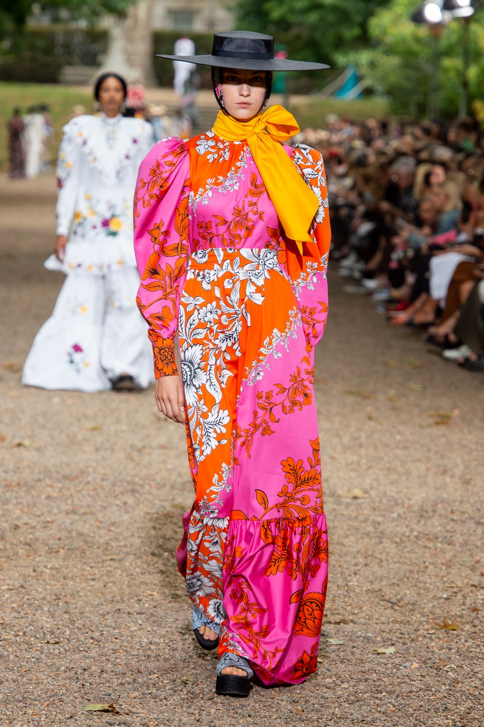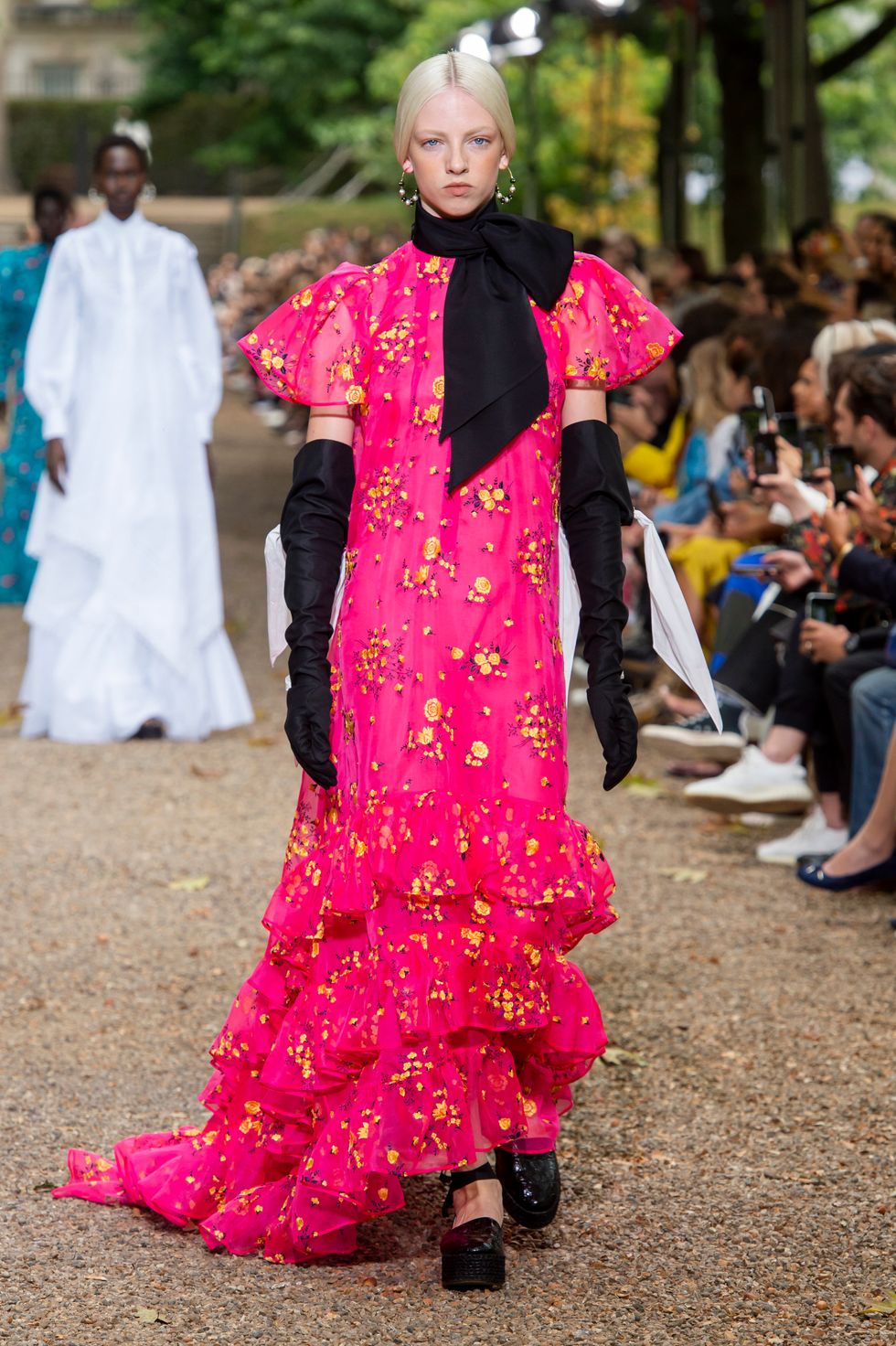 Erdem Moralioglu, known for his romantic, modest frocks and Victorian-inspired references, took the crowd to an outdoor setting on a tree-lined square in London for his Spring 2020 showing. While the Canadian/Turkish designer isn't particularly known for making sexy dresses, this season got rid of virtually all sexy design cues and removed any waist definition while completely covering the body from head-to-toe. Instead, his women for spring are regal, worldly, and unabashedly confident in their ethereal, statement looks. Here's everything else you need to know about the collection.