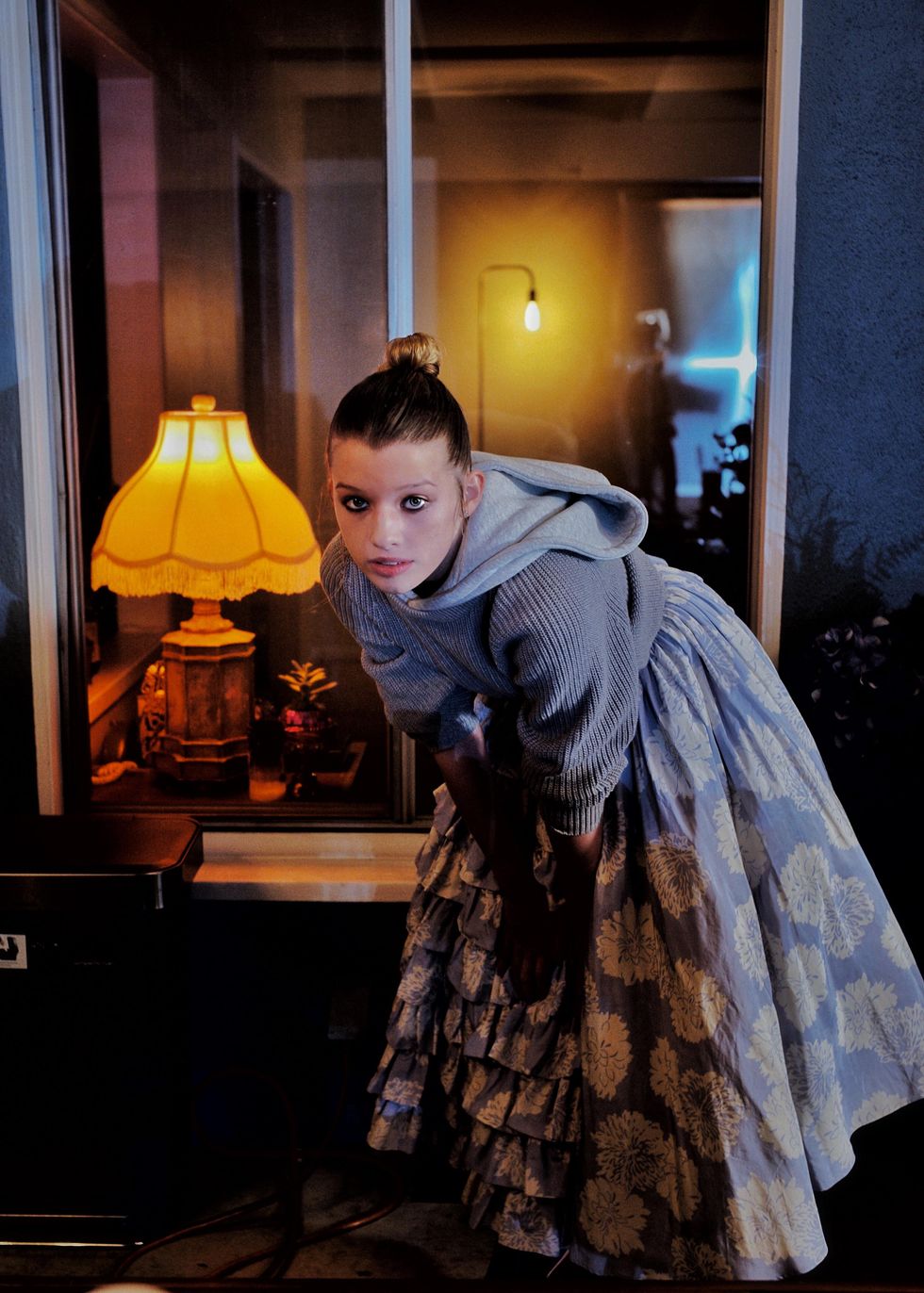 Sweatshirt: Alexander Wang, Skirt and shoes: Miu Miu