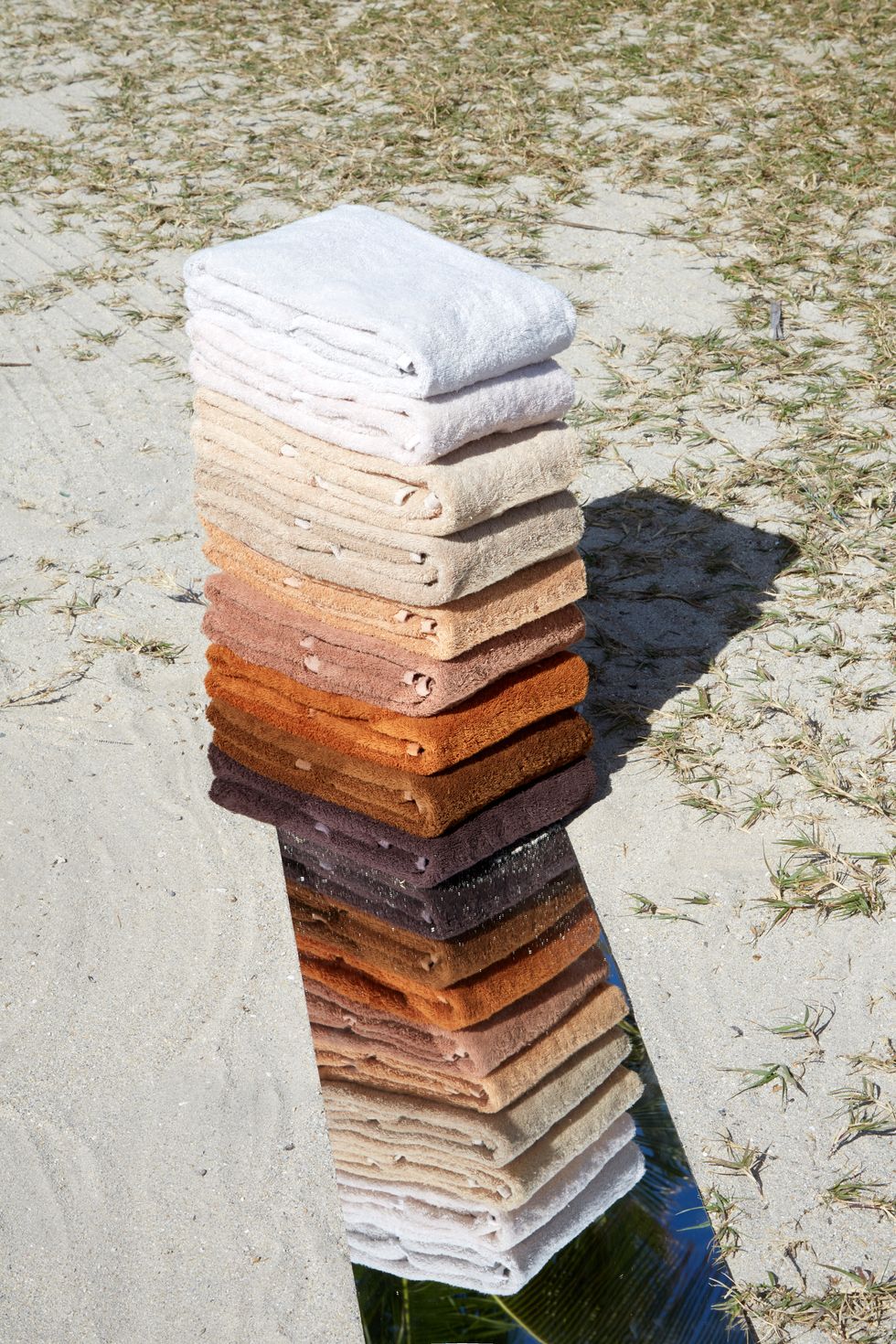 For his partnership with the brand, Burrichter chose nine colors (that almost resemble a range of foundation for various skin tones) and applied them to organic cotton towels sourced from the Ace Hotel and up-cycled by Everybody.World.