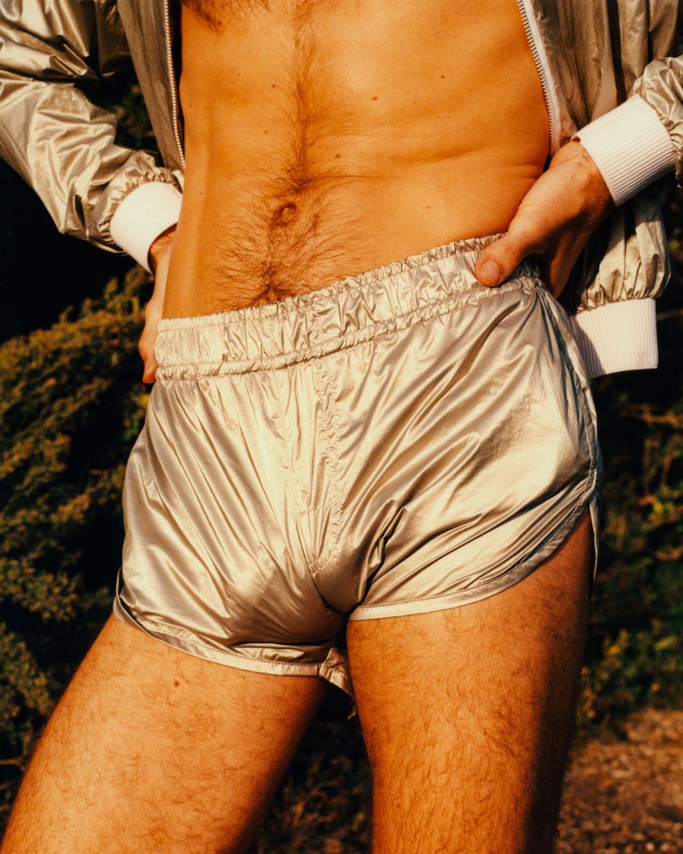 I knew I wanted to do about six to eight shoots, so each shoot would have to be a different setting. The main references were digital forms of voyeurism in pornography, so I was going off categories in gay porn and reimagining them in this SMUT world. With “The Cruiser” story, I knew of a really famous spot called Duke’s Mound in Brighton [in southern England] where I grew up, and I always wanted to shoot there. That was my first insight into gay culture when I was a child. Our parents would tell us not to walk around there at night because people still cruise there. It’s a stunning hill by the sea. We shot during sunset, and it gets the most gorgeous light.
