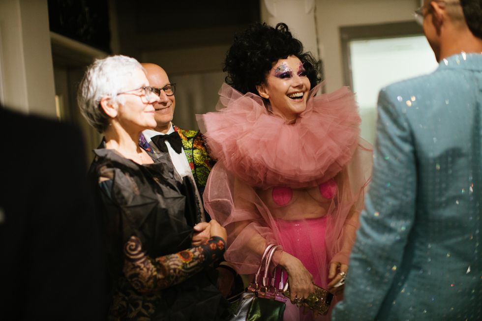 The cocktail hour for Fashion Centered 2019 began in The Center's courtyard, where some of fashion's best-dressed showed up and did not disappoint. Tulle was in the air upon the arrival of nightlife legend Susanne Bartsch and Fischerspooner frontman Casey Spooner. Both wore ensembles draped neatly in mesh-like material, chests exposed a shimmering at sunset. They weren't the only ones decked out in their Sunday best; each attendee sparkled in sequins and shimmery embroidery — the event was a queer, high fashion melting pot.