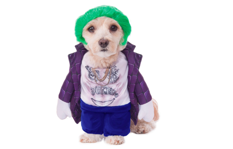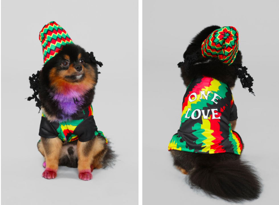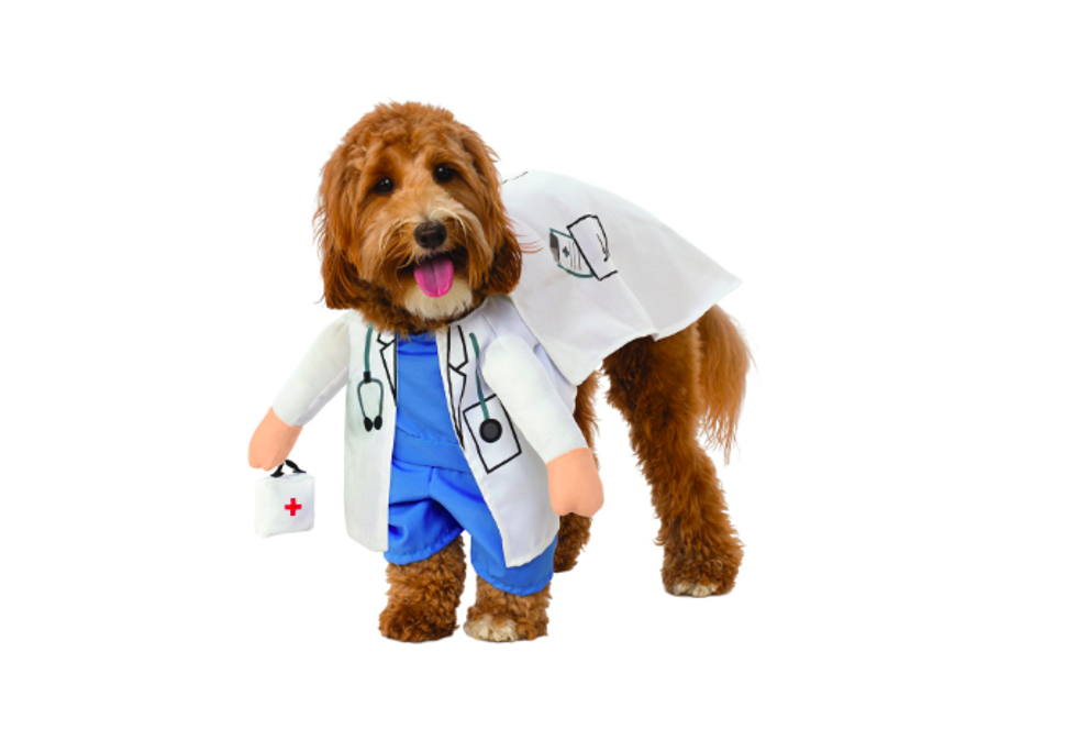 Options include a take on Jared Leto's Joker (the "Jokester Villain Pet Costume"), a sexy "Pirate Girl," a Bob Marley-loving "Rasta Pet," and the "Walking Pet Vet." The pup pictured as said "Pet Vet" bears a strong, adorable resemblance to Bradley Cooper's dog Charlie, aka the true star of A Star Is Born.