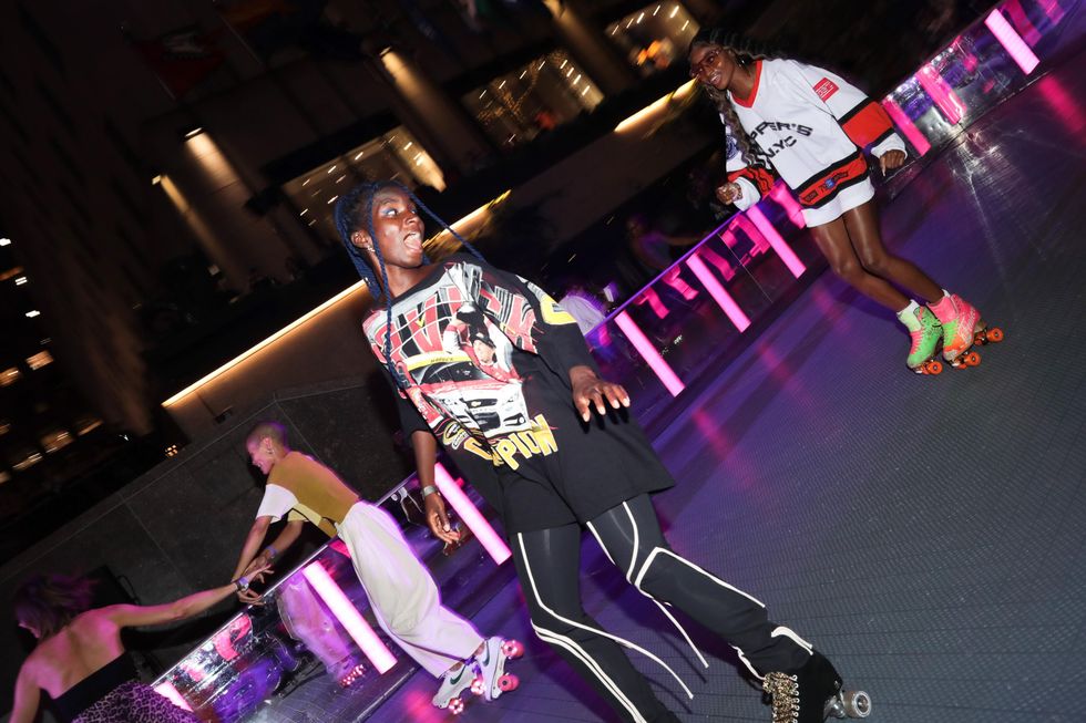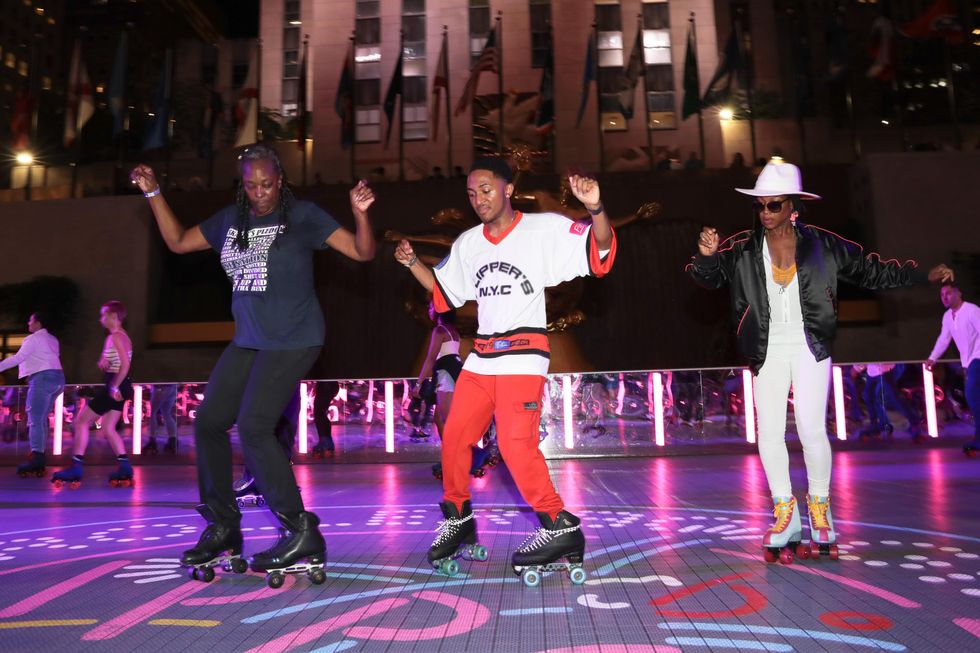 Flipper’s Roller Boogie Palace co-founder Liberty Ross celebrated the launch of her new 18k gold vermeil earrings and luxe nail lacquers with Mary J. Blige and Simone I. Smith for their accessories line Sister Love with a party at Flipper’s Roller Boogie Palace rink at Rockefeller Center.
