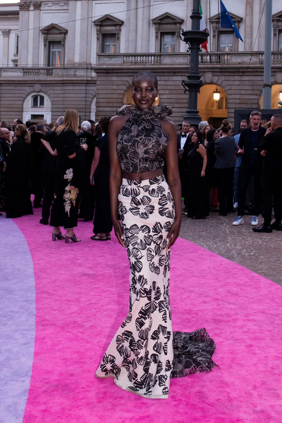 Designers, models, fashion execs and celebrities collided on the final day of Milan Fashion Week for a glitzy black-tie evening at the Teatro alla Scala. The CNMI Sustainable Fashion Awards, organized by the Camera Nazionale della Moda Italiana and the Ethical Fashion Initiative, featured runway shows by Gucci, Armani, Valentino and Prada as well as an awards ceremony presented by Rossy De Palma that recognized the best in sustainability efforts. Guests and honorees included Adut Akech, Indya Moore and Bethann Hardison.