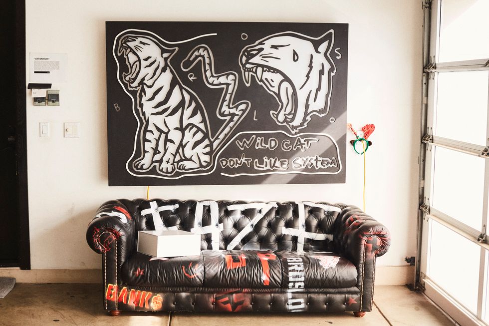 This fever dream of a home serves as the headquarters for professional video game players. FaZe Clan, to be exact. Founded in 2010 by three gamers — known by their tags, Housecat, Resistance and ClipZ — FaZe Clan is a collection of nearly 60 professional competitive gamers and video content creators. Within FaZe are sub-teams that specialize in certain games and compete in game tournaments for prize money — often six-digit sums. As with nearly all competitive gamers and gaming personalities, FaZe members range in age from late teens to late 20s. Their house is luxurious, of course, but is kept very much in the way you might expect from a dozen or so 20-somethings — furniture arranged more for utility than aesthetics, bright comic-style art and traces of past gags and pranks if you squint hard enough (no doubt kept modestly in check by a regular cleaning service).