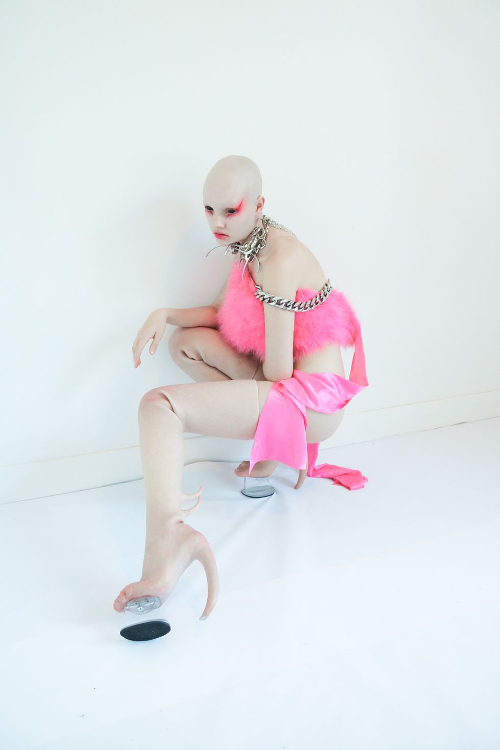 In addition to Fecal Matter's regular best-sellers, the pop-up will also feature an exclusive collection for Selfridges called "Chained to the System." The capsule consists of one-of-a-kind pieces including dildo handbags and nonbinary-friendly pieces with metal hardware accents.