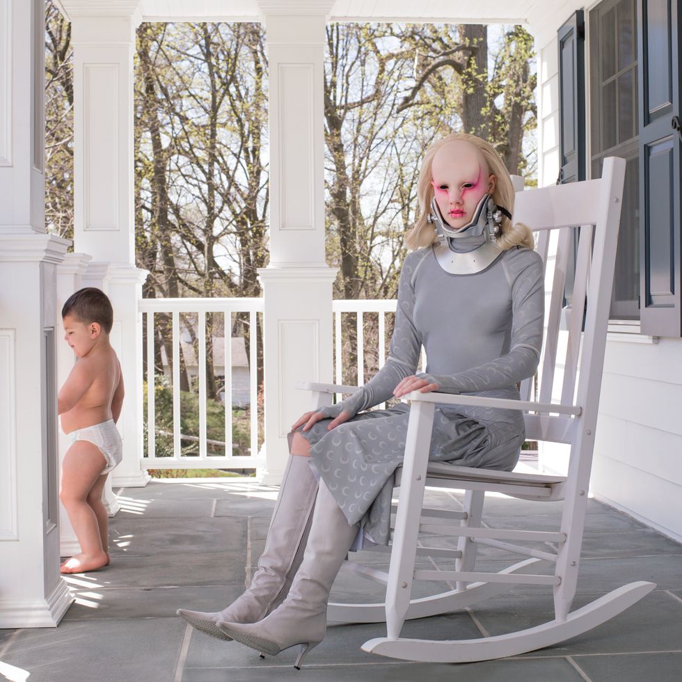 Taking the city bus, Hannah Rose Dalton, 23, and Steven Raj Bhaskaran, 26, sit side by side, both bald and brow-less with colorful hair extensions glued onto their bare scalps. The whites of their eyes are blacked out with sclera contacts, and their thigh-high platforms elevate them a foot above the rest. Steven's purse is slung over their shoulder, only the strap is replaced with a giant double-sided dildo ("The BBC Dick Bag"). Next to the average commuter, they look like aliens crash-landed on Earth, devils awaiting their exorcism or maybe superhero villains attempting to assimilate.