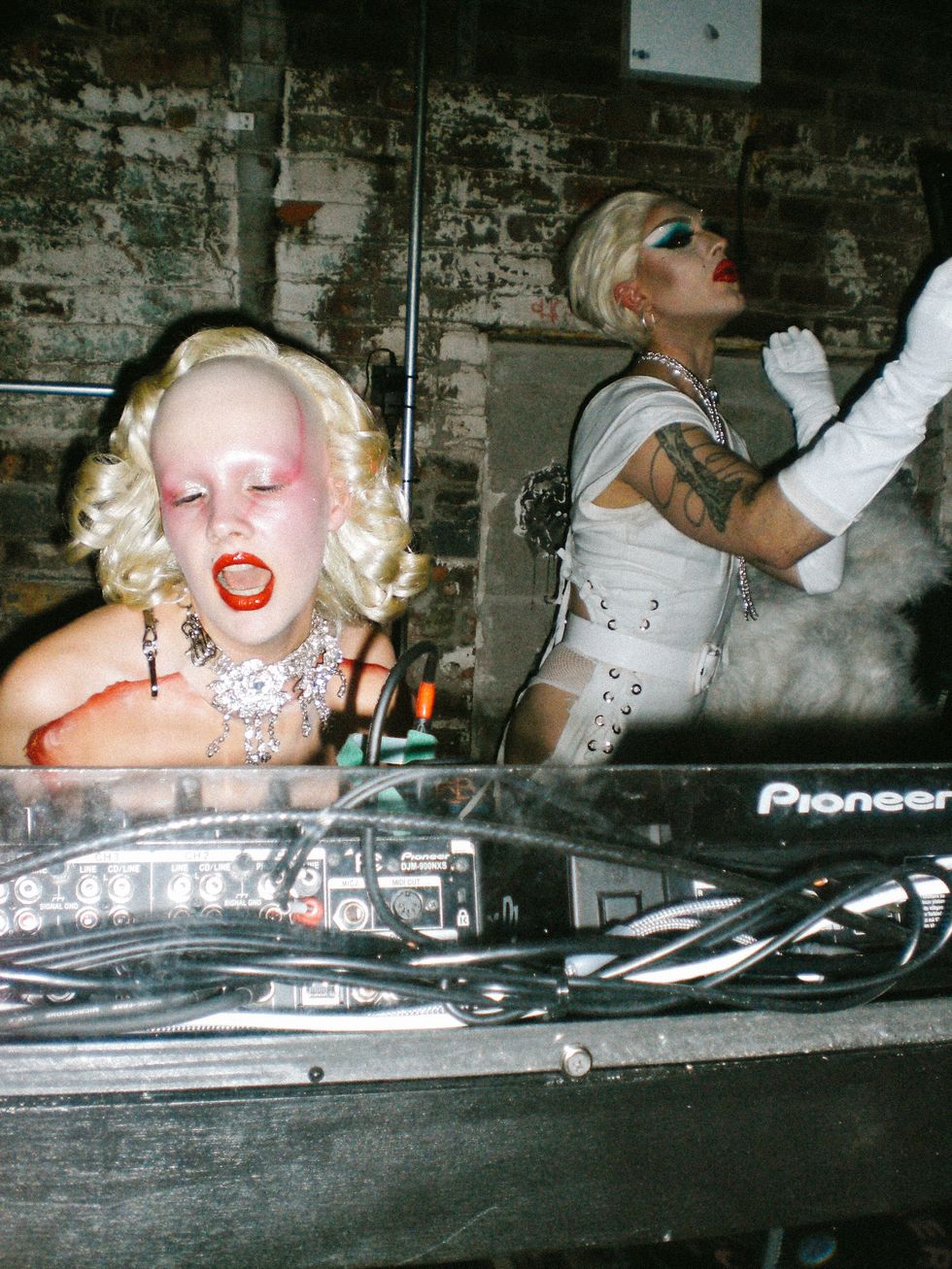 You could never lose Fecal Matter in a crowd. To describe their look as "distinctive" would be an understatement on par with calling BTS stans only a "little obsessed." The Montreal-based pair's Instagram is peppered with photos of bug-eyed onlookers and bewildered gawkers doing double takes at their alien-like appearances. Adorned in '90s rave-inspired couture and enhanced with prosthesis that would feel at home in an H.R. Giger horror orgy, this exact unmistakable blend of the freakish with the fashionable has made Fecal Matter the perfect choice to DJ the latest installment of Play Now!