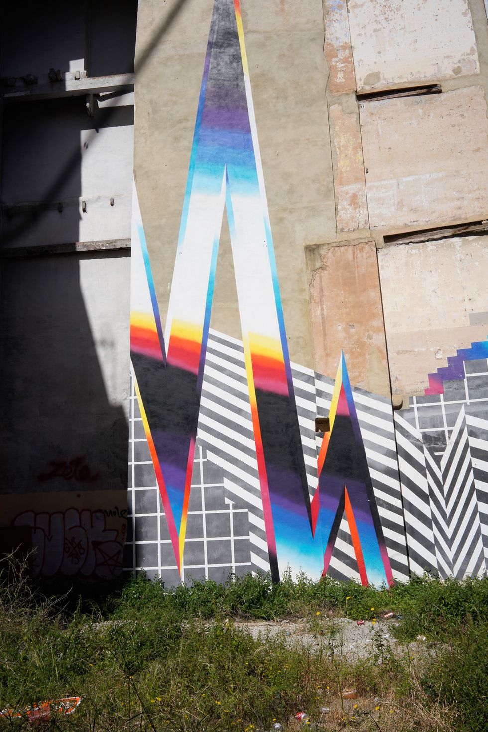 His theories struck a chord with Felipe Pantone, a technology-obsessed op-artist whose practice originated with graffiti at age 12, in Alicante, Spain. Pantone realized that the eye-catching style he had developed as a young artist was a response to a similar environment of omnipresence, speed and ephemerality in the streets. "Graffiti is about writing your name as many times as possible, as big as possible, with as much style as possible, as many places as possible," he says. "It's like, I saw that piece, I want to paint next to that, bigger. I just want to do it and win the game, for other writers to see."