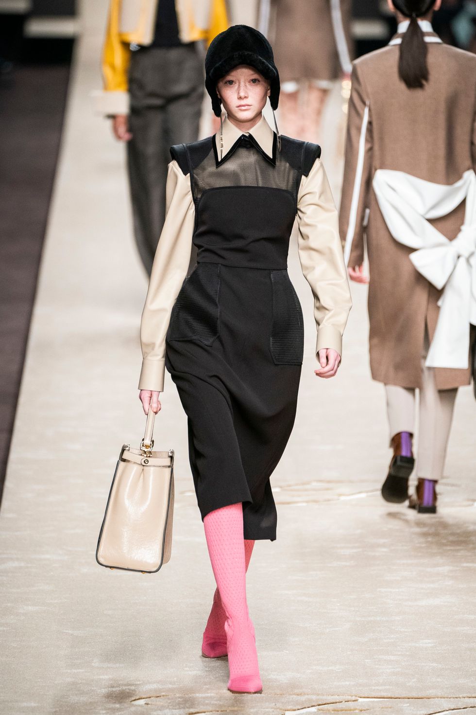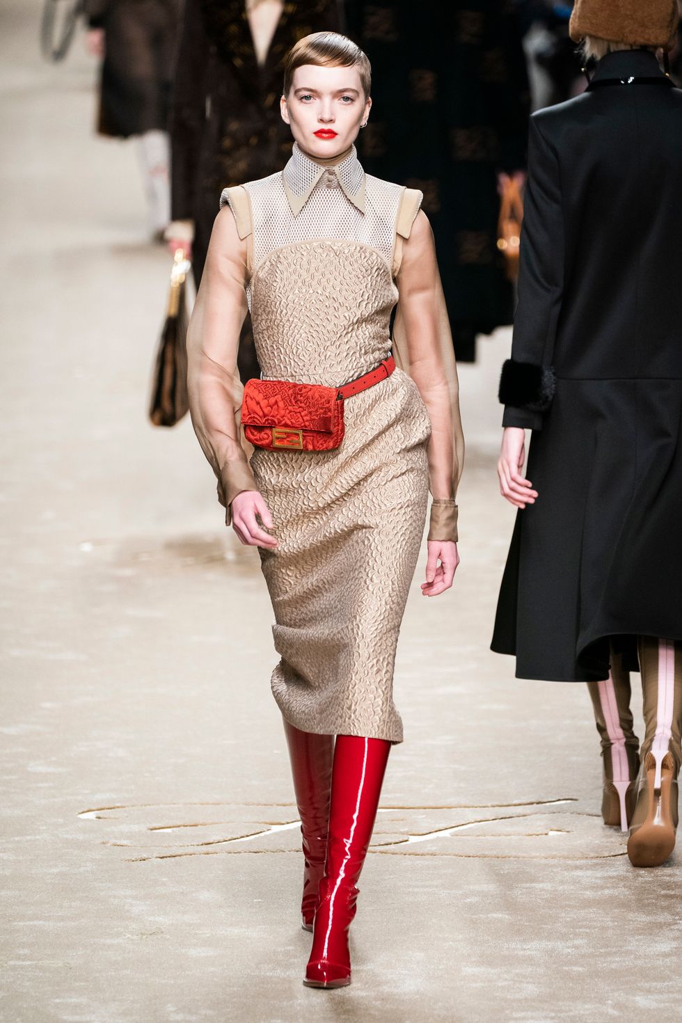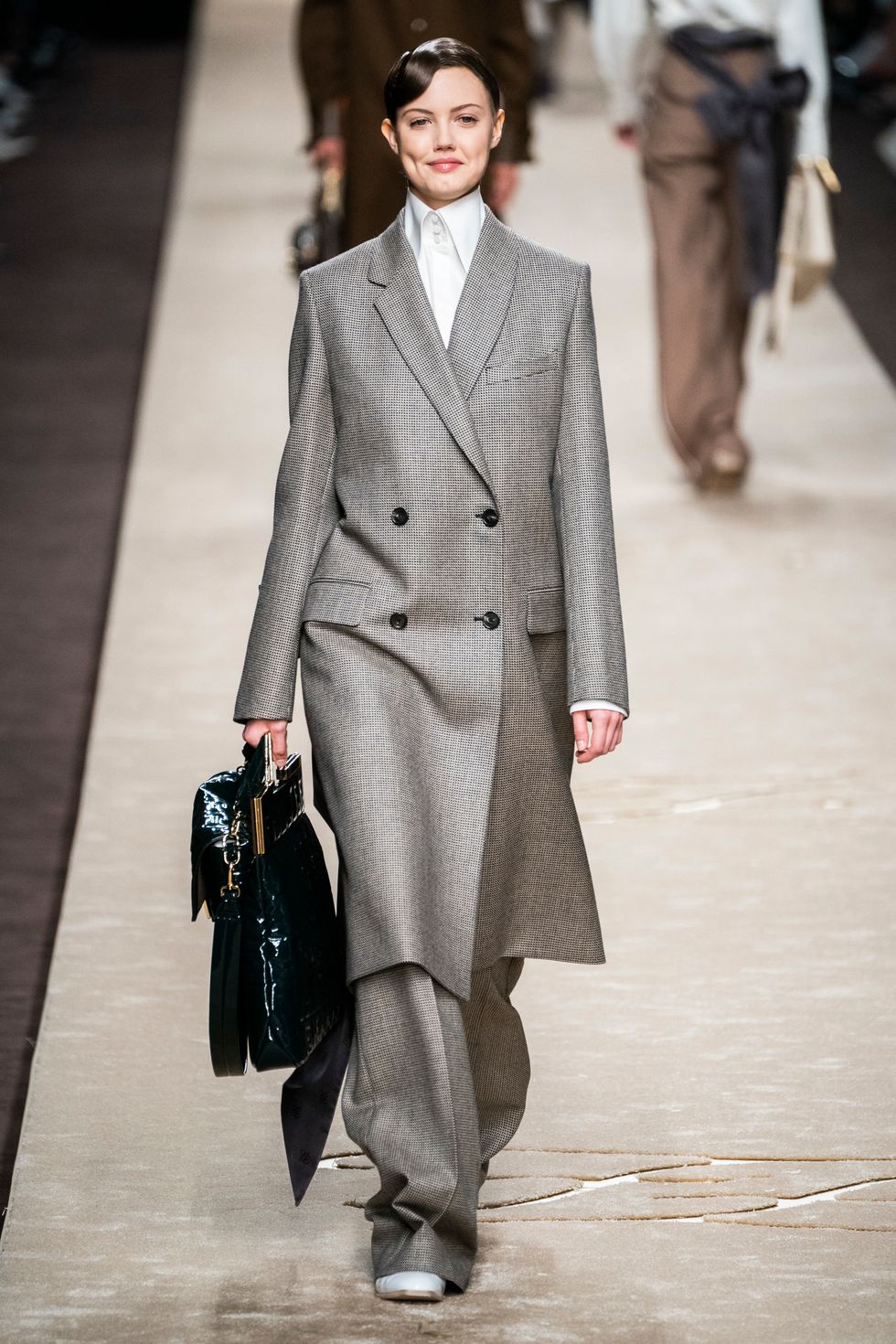 Many of the signature bags in Fendi's accessories collection got updates. The baguette, for example, came embossed with multiple straps. Totes were large but folded into clutches. Bags appeared to be doubled up on the runway so that some models looked like they were carrying mini bags alongside normal top handle sizes.