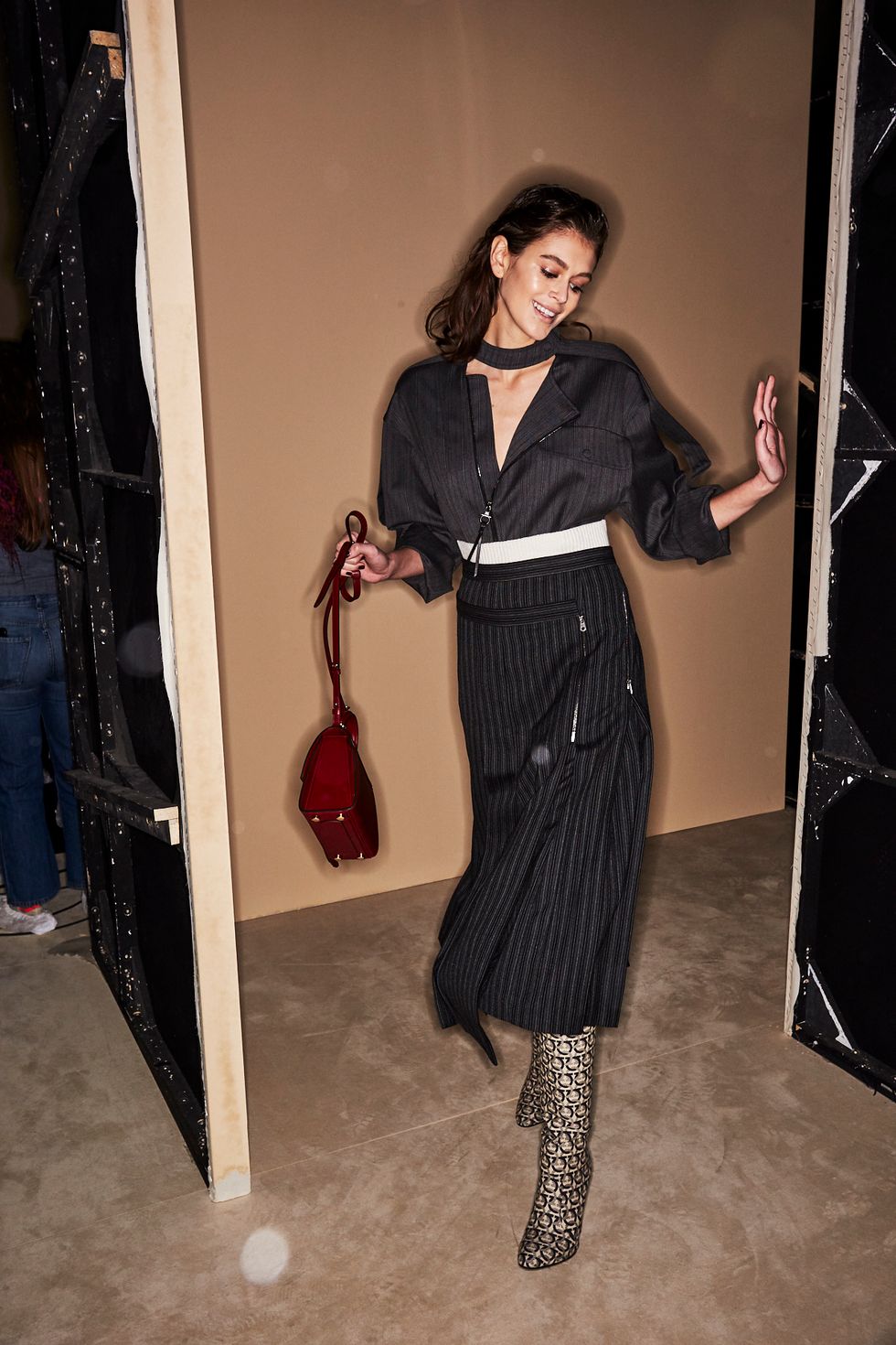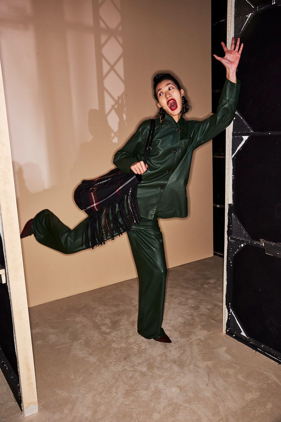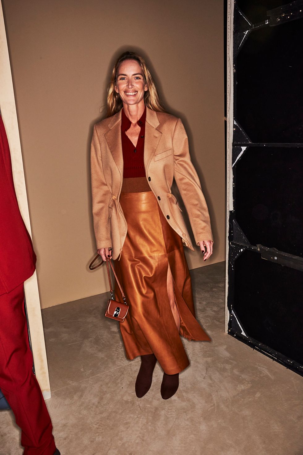 We saw the return of the slinky slip dress here. In blue, sea foam green and red and chocolate leather, each one added a '90s cool aesthetic to the collection.