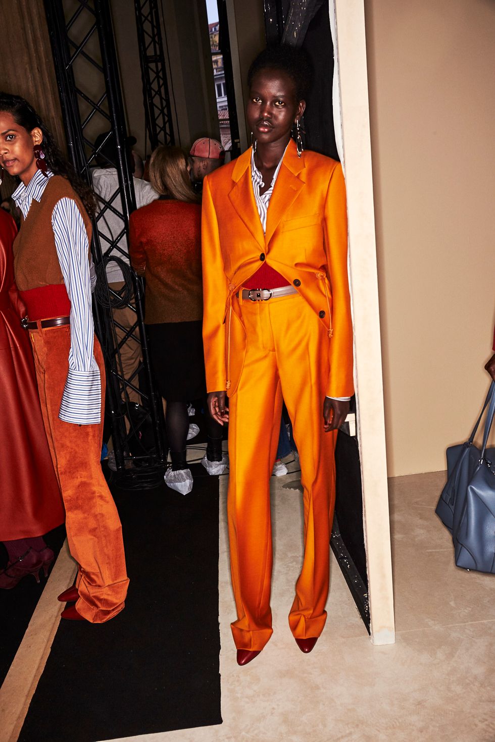 Possibly the most exciting element of fall 2019 was the monochromatic dressing. In gray, deep red, forest greens and almost metallic-like navy blues, he sent a cadre of models down the runway in single bold hues.