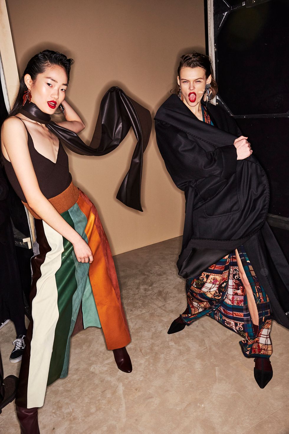 Paul Andrew, the recently appointed creative director of Salvatore Ferragamo, has a history of taking archive shapes from the heritage house's archives and reinventing them. Namely, the classically iconic footwear (Andrews began his career as a footwear designer, after all). This season, he looked to a distinct shape from the early '40s — a suede patchwork wedge — to build a collection of colorful looks. Here's everything else you need to know about the fall 2019 show.
