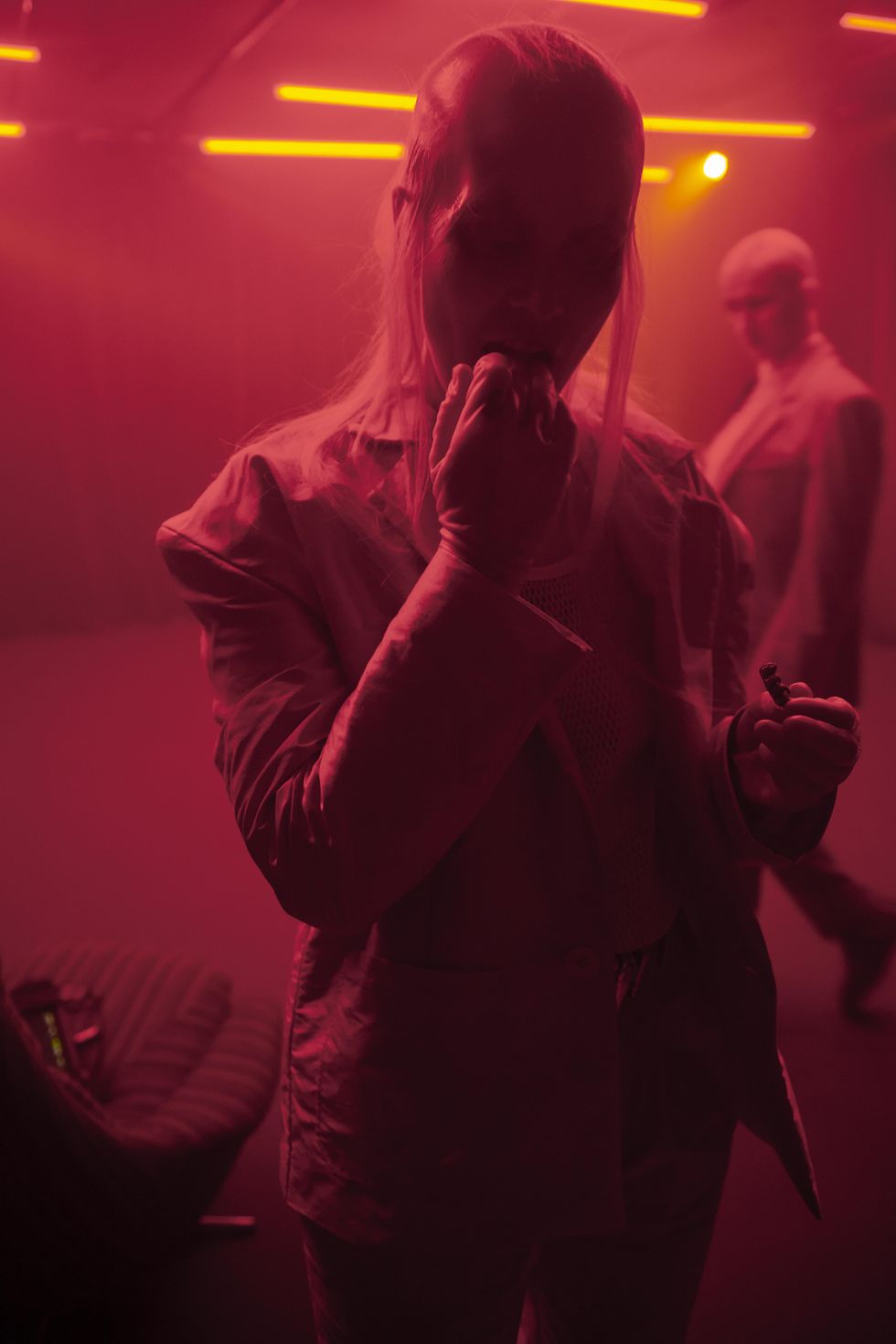Karin Dreijer preparing for their dancing scene, choreographed by Agnieszka Dlugoszewska.