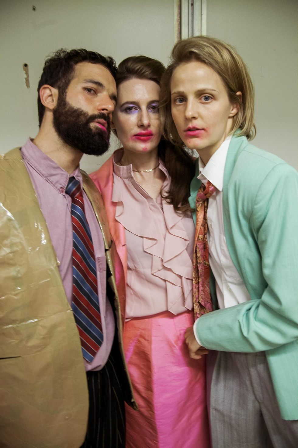 Dancers Víctor Pérez Armero, Hana Erdman, and Louise Dahl getting dressed.