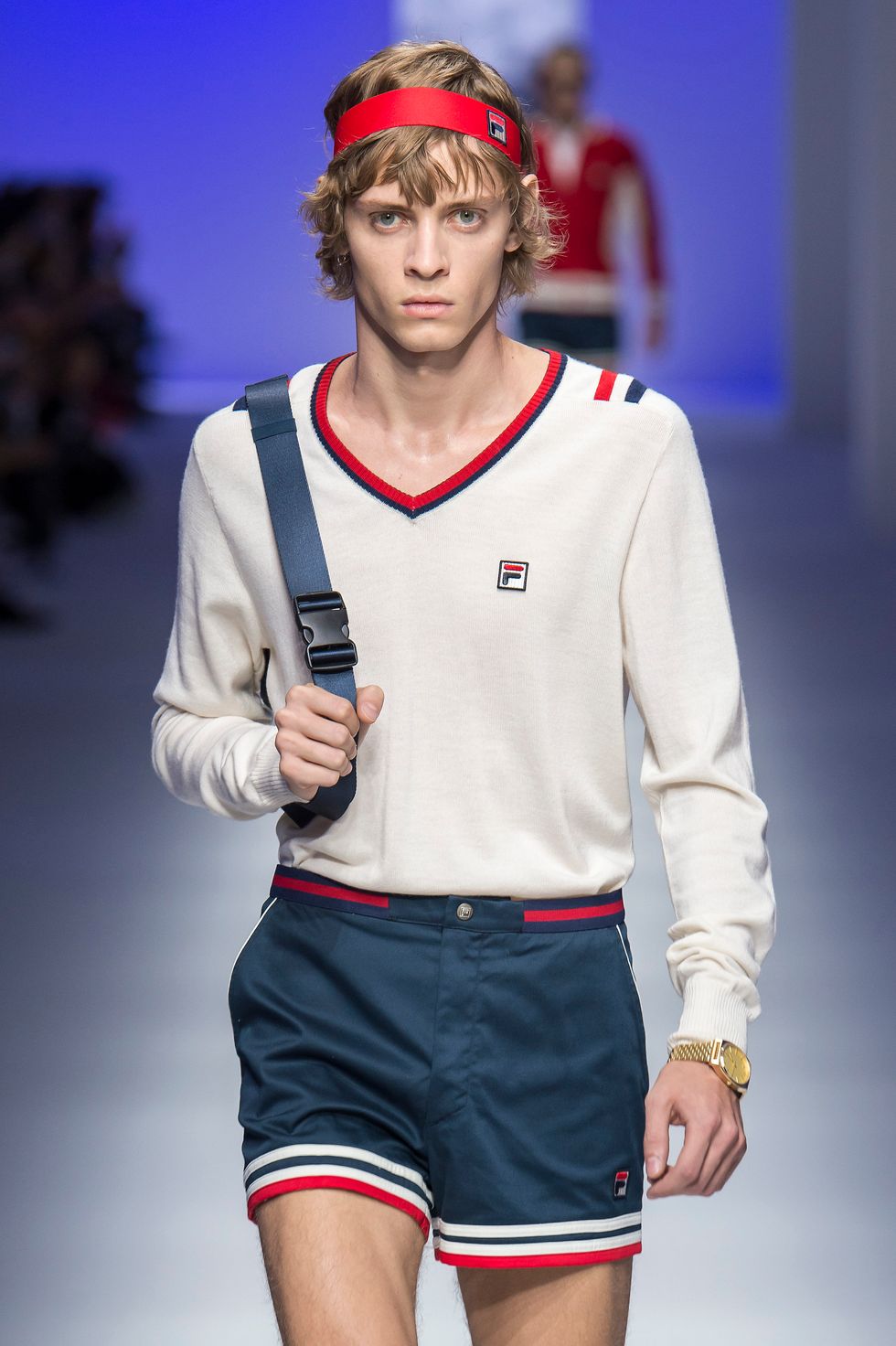 Among the roster of high fashion designers at Milan Fashion Week, seeing Fila on the list feels at first like a typo. But the Italian heritage brand, known internationally for their red, blue, and white logo-filled footwear, aren't here by accident. Led by their new creative directors, Josef Graesel and Antonino Ingrasciotta, Fila staged the first ever runway show to coincide with an exhibition at the Triennale Museum celebrating 107 years of history (yes, Fila is 107 years old). It was a bold move yet, given high fashion's descent into streetwear and embrace of sneakers, you can't say it wasn't logical.