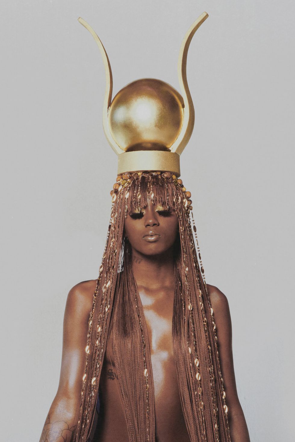 Beaded hair: Misa Hylton x Terrence Davidson, Gold crown: Misa Hylton x Diesel
