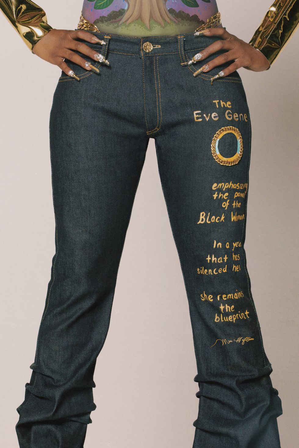 Arm cuffs and jeans: Misa Hylton x Diesel, Body pant: Ezra D. Ferguson