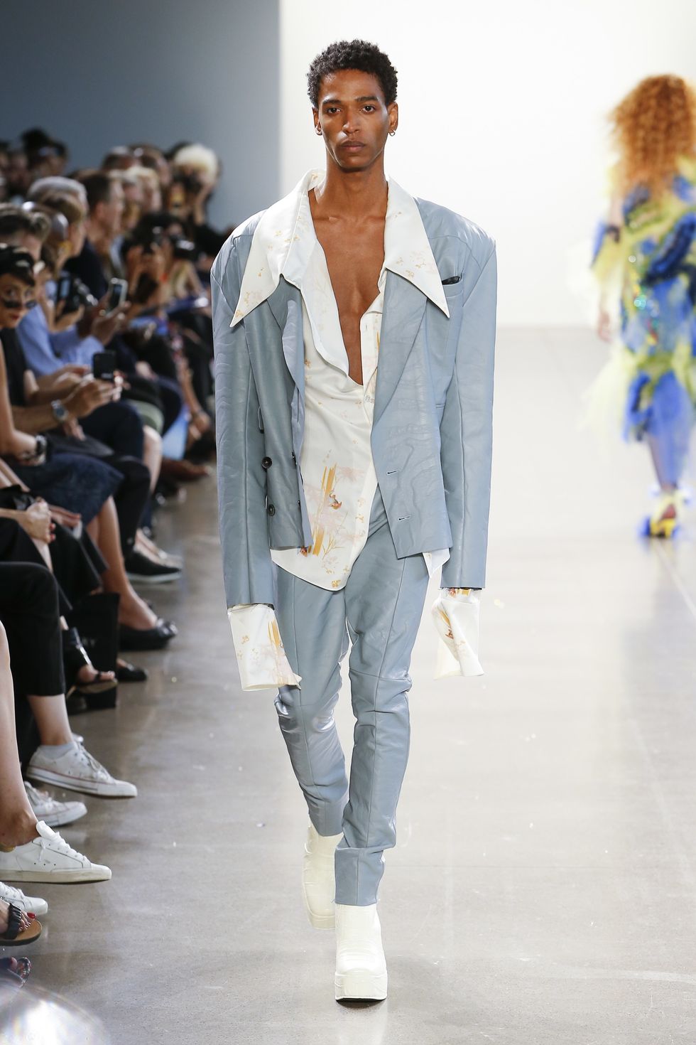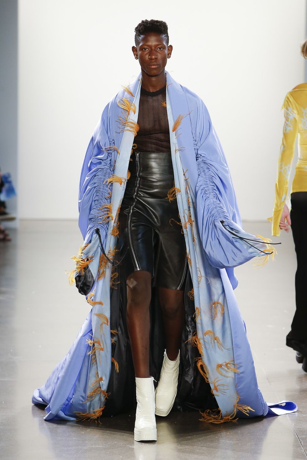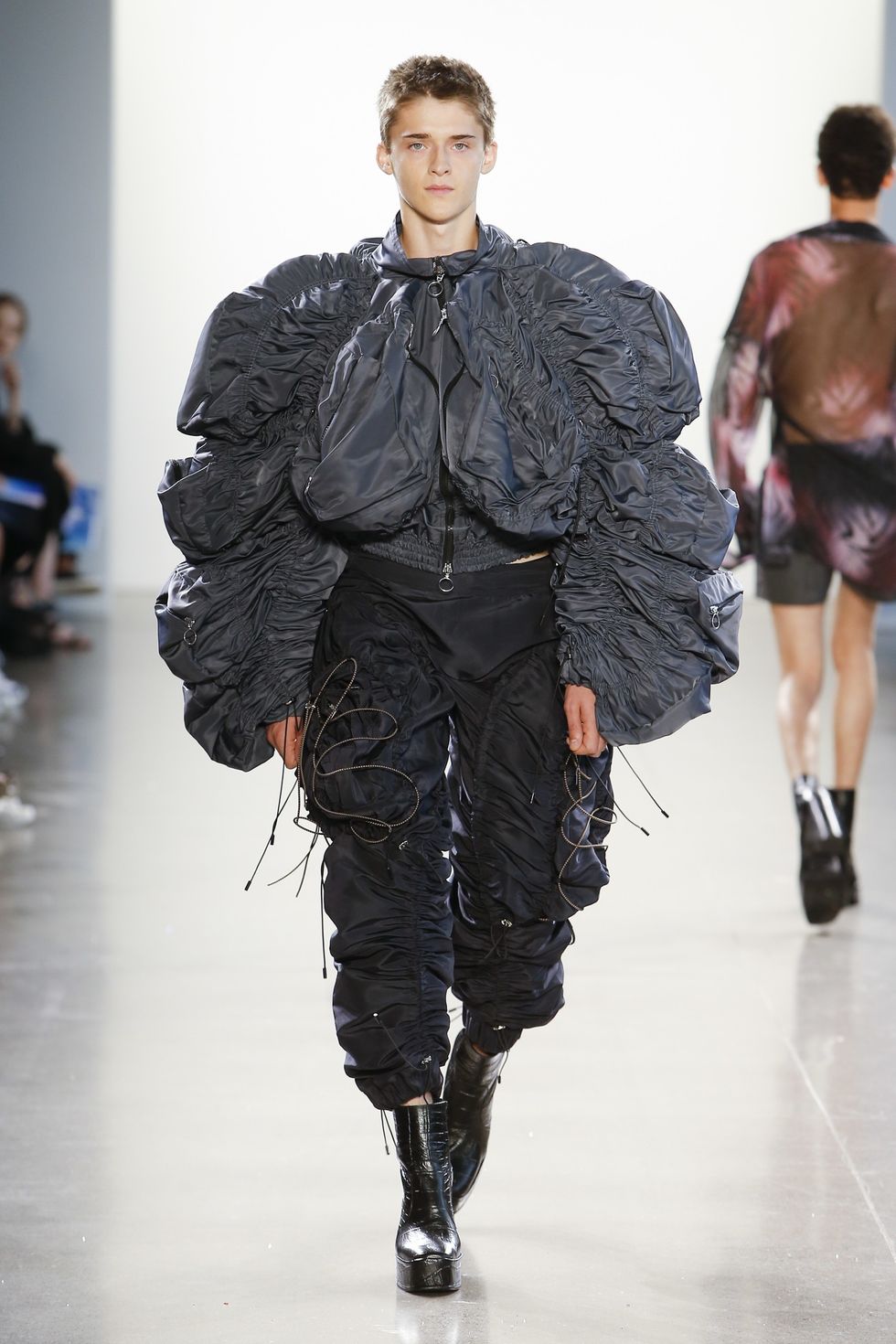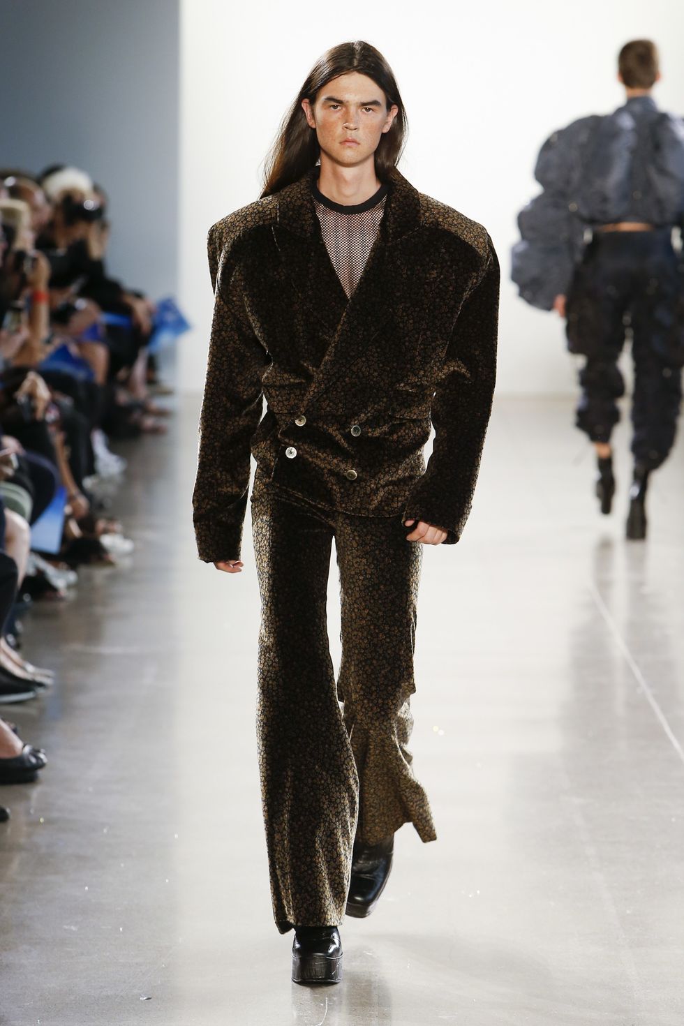Floyd Hogan is the breakout fashion label by Parsons MFA graduate and rising designer Madeleine Hogan. The Australia native debuted her thesis collection during Parsons' seasonal NYFW show this week, and it was one of the only menswear-focused collections of the presentation. As such, the conceptual clothes focused on oversized, exaggerated silhouettes and various construction techniques as a commentary on socially upheld notions of maleness. PAPER caught up with Hogan to talk about male drag, toxic masculinity in the #MeToo era, and professional wrestlers.