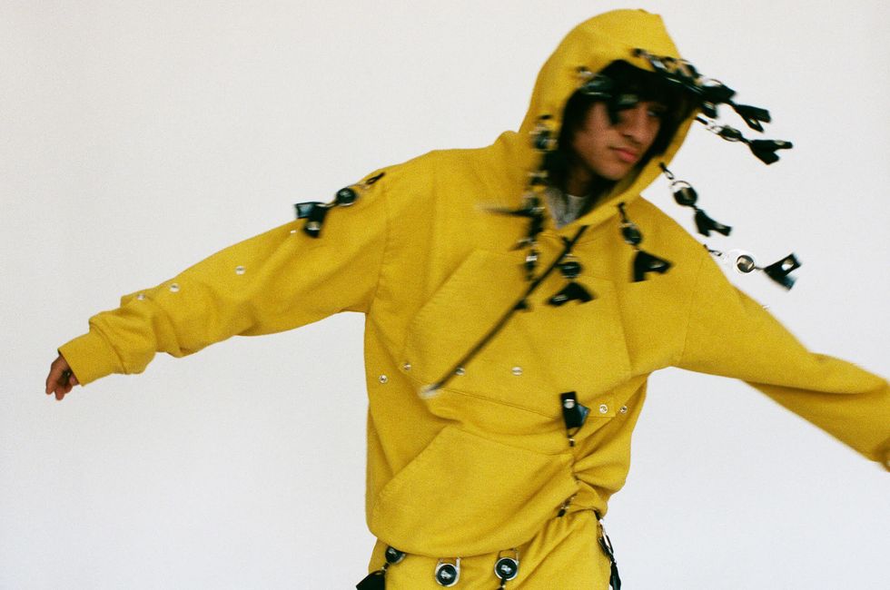 Hilfiger, the 26-year-old daughter of Susie and Tommy Hilfiger, founded Foo and Foo in 2017. Raised in Greenwich, Connecticut ("shamefully so"), she went on to study at RISD. And after graduating in 2015, she moved to Los Angeles, working industry jobs, including a stint as a pattern-maker for Eckhaus Latta designer Zoe Latta. She founded Foo and Foo in 2017, and has since produced three collections — Spring 2020 is on the way — of basics that feel just a bit off, almost punk. Most of her pieces are essentially customizable for the wearer; one can tug at pulleys on pants to make the waist tighter or the leg shorter, or finger the elastic strings on a zip-up hoodie for a ruching effect. Some of the clothes are trimmed with hanging whistles.