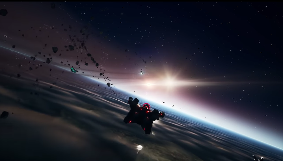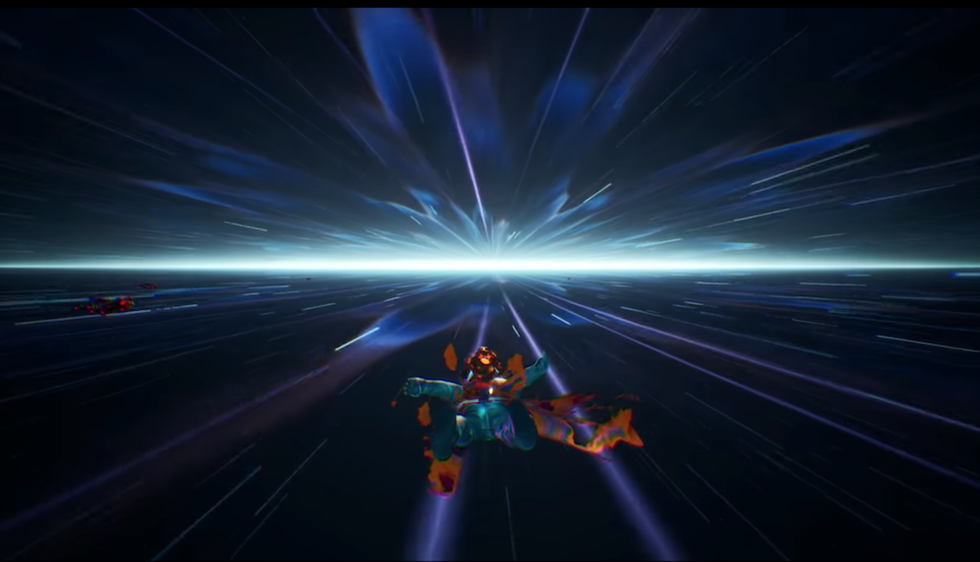 A few minutes after the countdown hits zero, there's still no sign of Travis. Is he going to bail? Running late? Maybe got too lit last night? And then the unmistakable intro to "Sicko Mode" begins playing as an Astroworld-like terraform descends toward us emitting a purple beam that gives birth to a 100-foot, shirtless Travis Scott. He's ripped. The force of his entrance rockets everyone backwards, while my controller rumbles in-sync to the first verse. Looking upward, the skyline has the color palette of an A24 coming-of-age film.