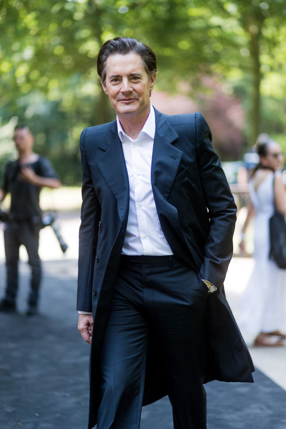 For his Spring 2018 Balenciaga menswear's show, Creative Director Demna Gvsalia chose the bucolic interior of the Bois de Boulogne as the location, and what did the day's fashionable strollers stumble upon but none other than David Lynch Everyman, Kyle MacLachlan (aka, Twin Peaks' Agent Dale Cooper). In an elegant top coat with the label's signature exaggerated shoulders, the amiable (and agelessly handsome) actor lent a perfect Lynchian oddness to the otherwise idyllic afternoon. Also to google: Dadcore.