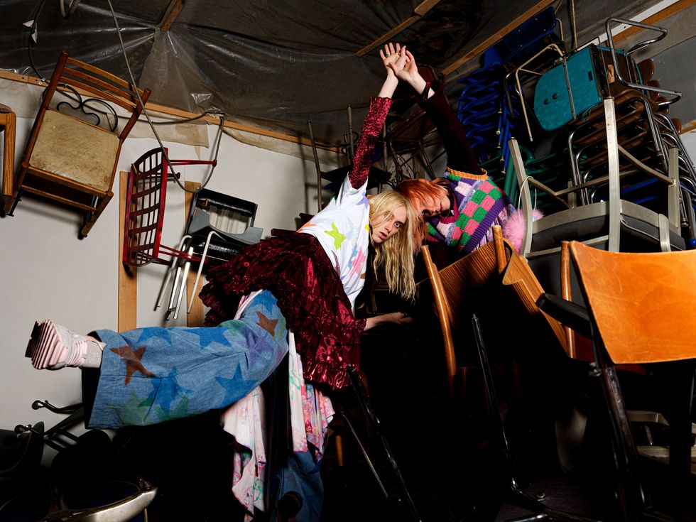 At New York Fashion Week last September, designer Collina Strada enlisted Brooklyn siblings Frost Children to close out her playful Spring 2022 runway show. Bandmates Lulu and Angel brought their raucous brand of twisted pop-punk to the FROW of Hari Nef, Tommy Dorfman and Aly & AJ, complete with a hair-raising performance of tracks off their 2021 album, Elixir Rejection (which packs in unruly vocal distortions, weirdo electronic sparks and constant shifts in tempo that leave you breathless).