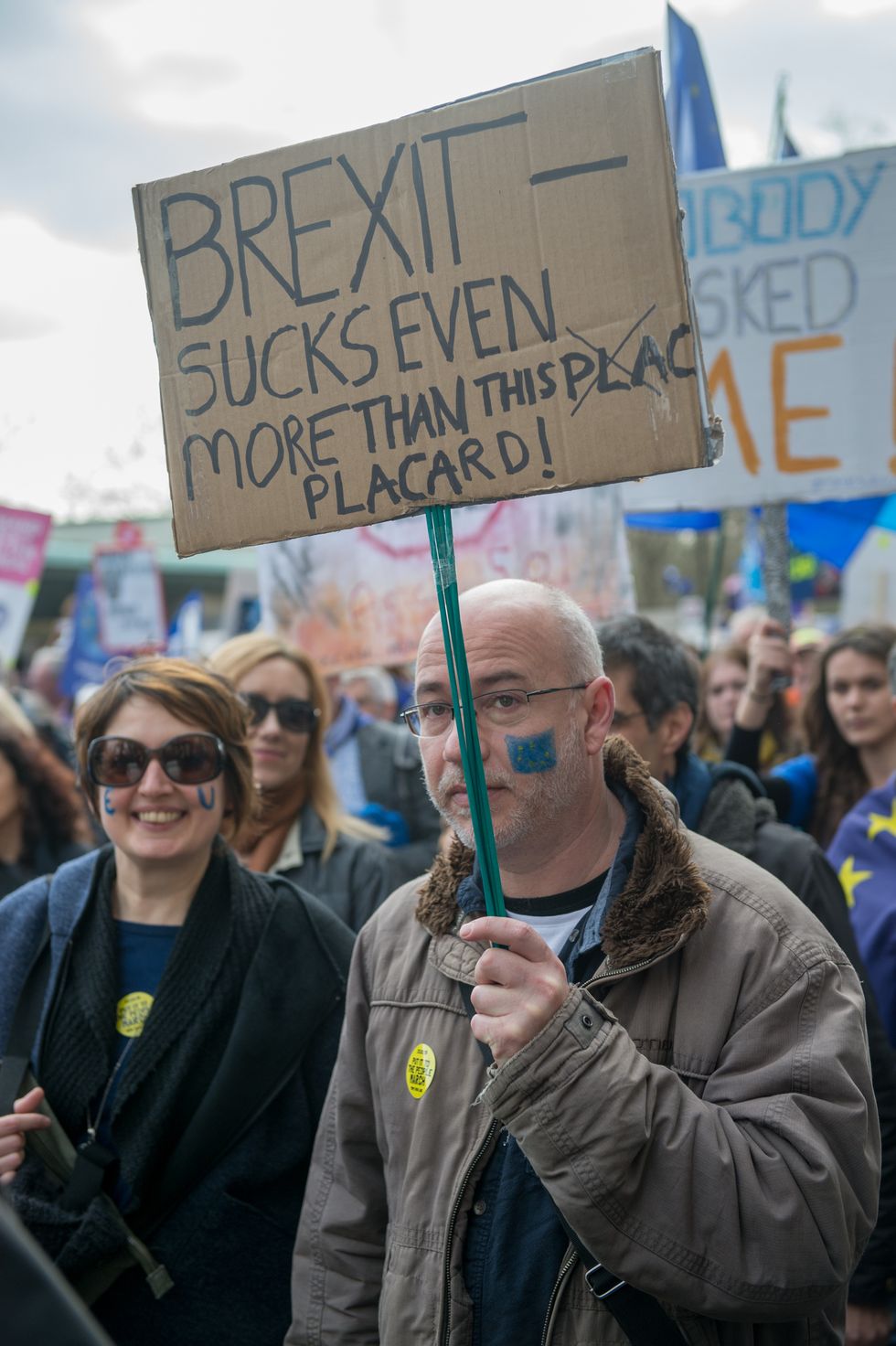 The protestors marching to Parliament were holding signs, asking for the Brexit deal to be put to a public vote. Many of them definitely tried to get the government's attention by being creative with their placards. Here are some of our favorites: