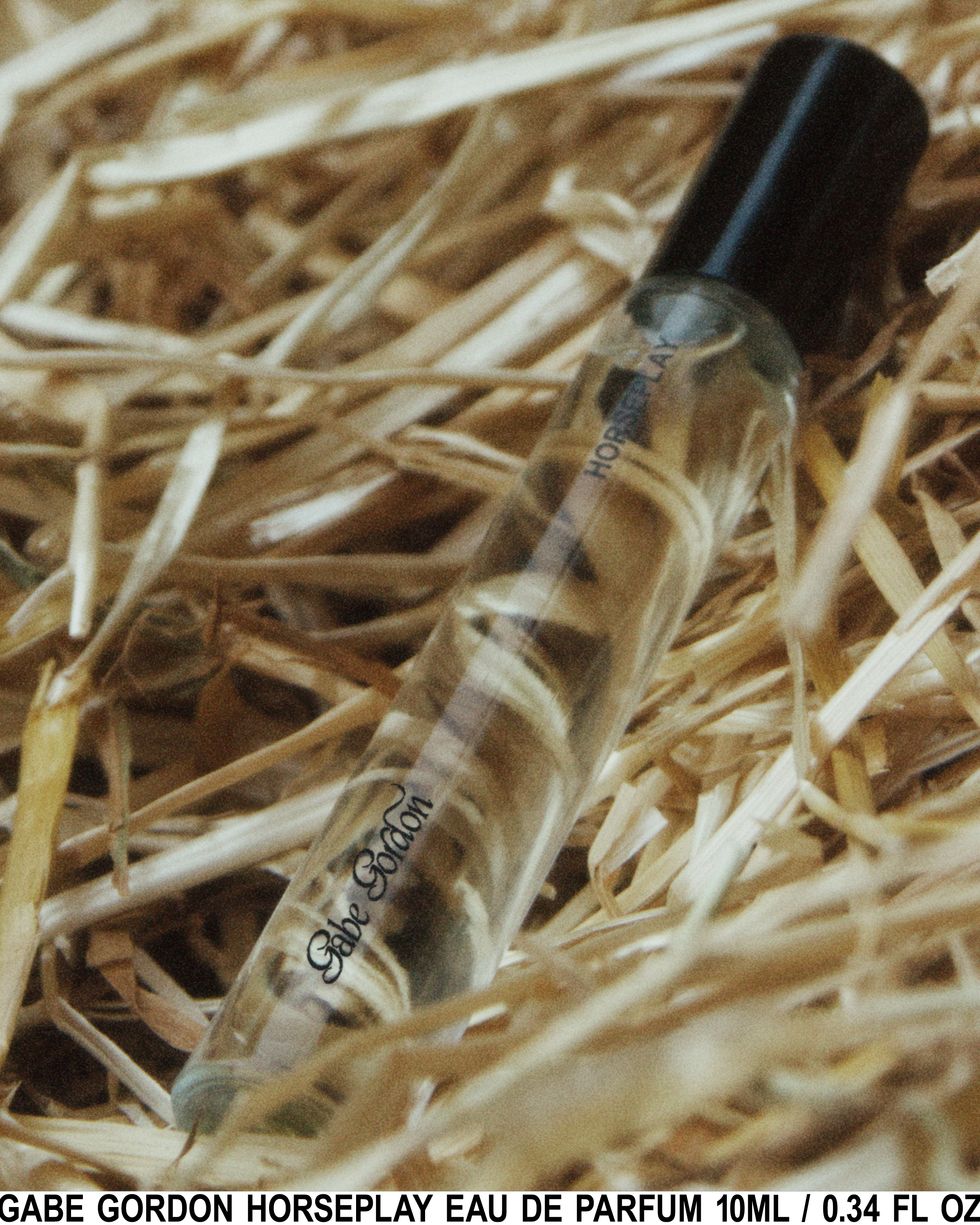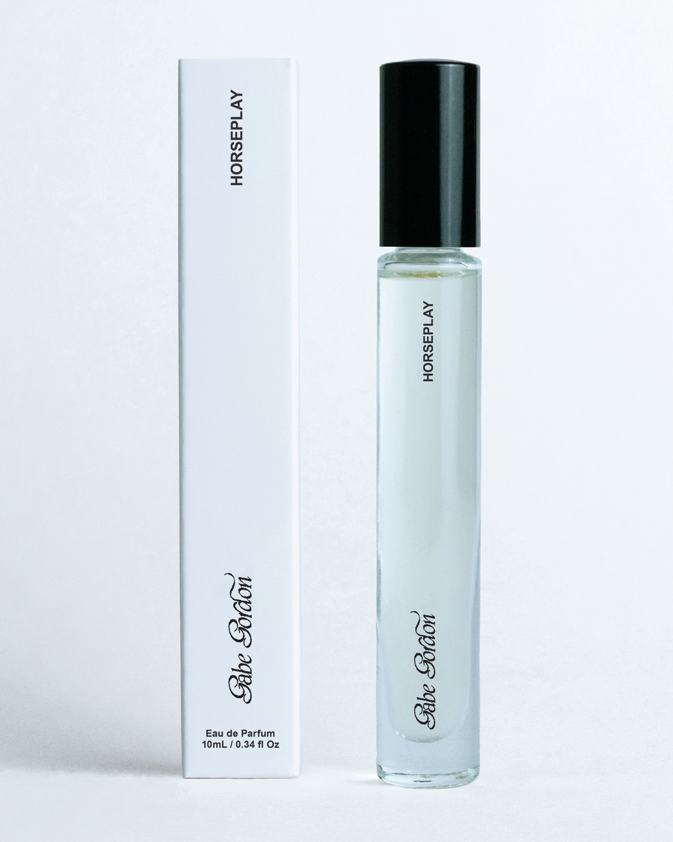 Naturally, it made sense for Gordon to create a signature fragrance inspired by "Horseplay." He teamed up with Australian perfumer Callum Mitchell, who founded his own label Perdrisât, and together they imagined a scent that’s now available online for $48. The gender-neutral eau de parfum has notes of rose, hay, vetiver and leather, inspired by a list of key words that Gordon and Mitchell developed, from “heat wave” to “rope burn.” The result is masculine, nightmarish, but also a bit girly. “I liked imagining a faggot like myself shopping for an elegant scent at Aēsop,” Gordon says.