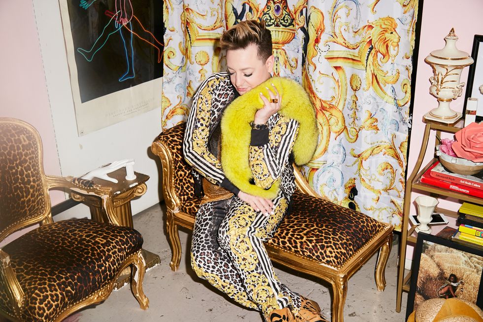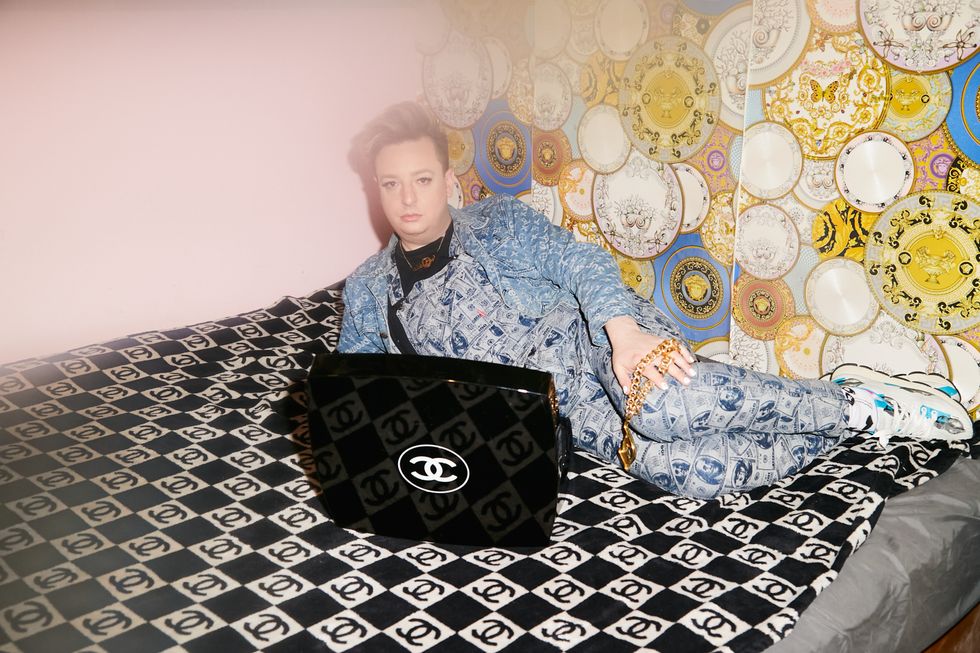 While the internet-famous vintage dealer's online persona is colorful as can be, it's surprisingly easy to miss the nondescript Williamsburg building where Held lives and works. It requires another glance to see that the address is correct before ringing the bell. Answering the door in a Versace Couture baseball cap, graphic t-shirt and sweatpants, Held radiates off-duty chic as he walks through the fashion closet he calls home.