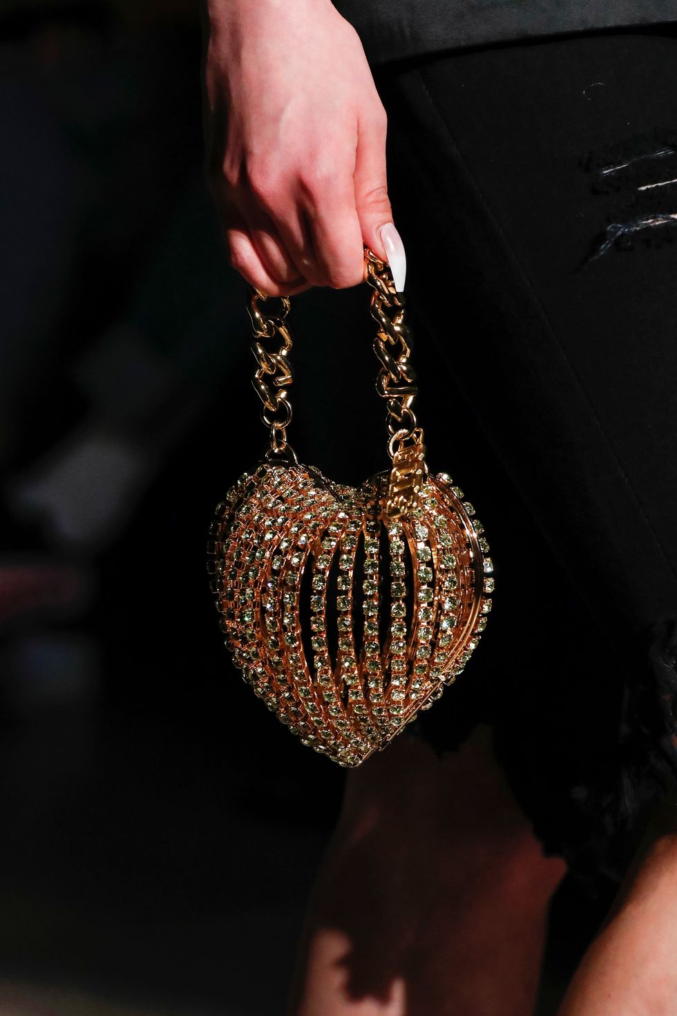 Many looks were adorned with tiny crystals by Czech-based Preciosa (a competitor to Swarovski) on gowns, knits and and accessories like a dazzling heart-shaped minaudière.