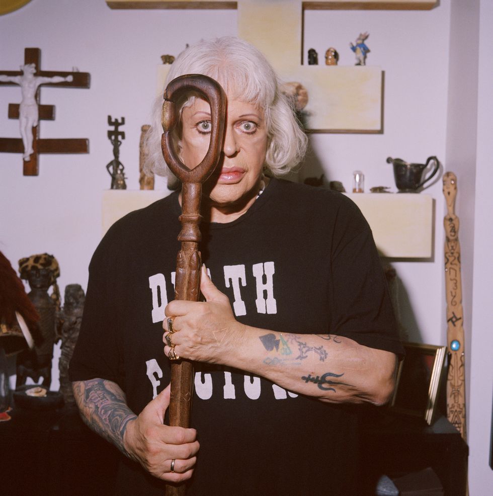 As P-Orridge prepares English-style tea with milk and honey, I notice the Psychic TV crosses and other occult memorabilia lining the walls of he/r studio apartment. There are serpentine walking staffs and symbols representing the number 23, which holds special significance to P-Orridge. In numerology, it is often cited as a number representing freedom and fluidity with deep spiritual and religious context. In Christianity, Psalm 23 is often invoked as a sort of "last rites" passage: Though I walk through the valley of the shadow of death, I will fear no evil.