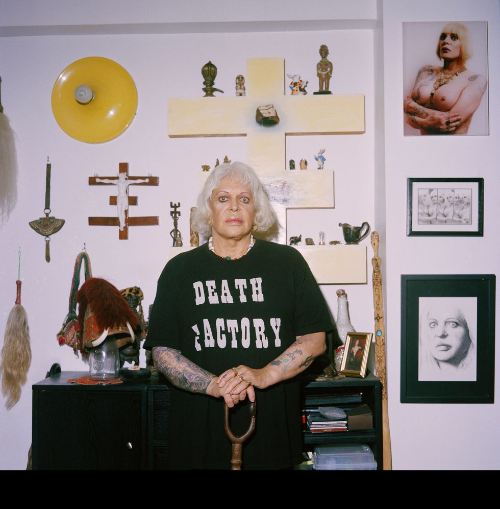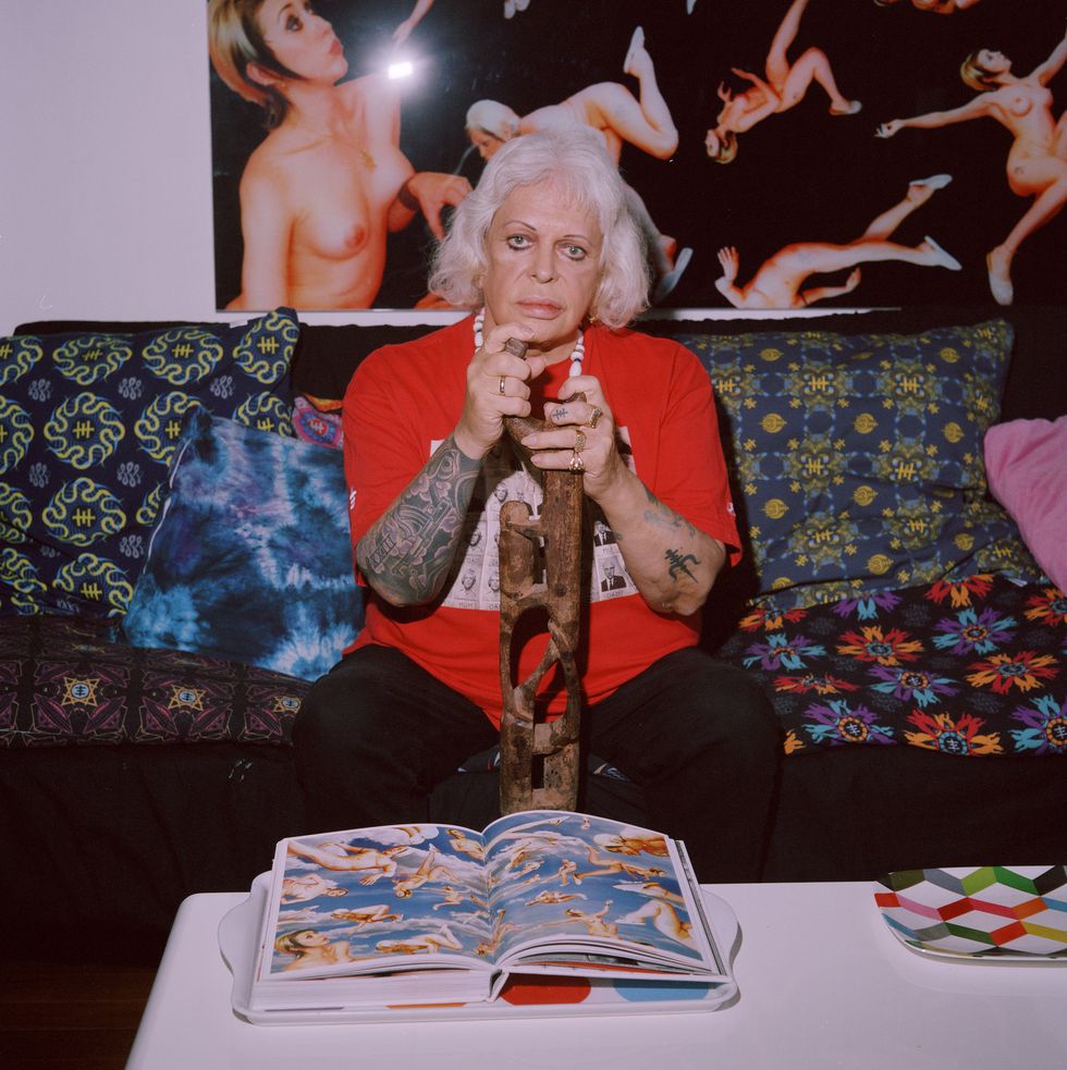 P-Orridge wrote a book detailing the whole thing retrospectively. It's a thick, hardcover assemblage of intimate photographs and essays called S/HE IS (STILL) HER/E. Sitting in he/r Lower East Side home, I'm flipping through copy 647 of only 1,323 printed editions while also reading news items about he/r battle with leukemia, which began in the 2017 while on tour with Psychic TV. Seeing photos of fluid drainage from he/r lungs on Instagram, all while watching he/r take breaths from oxygen tanks in he/r living room is surreal. S/he's in high spirits, but also in a great deal of discomfort.