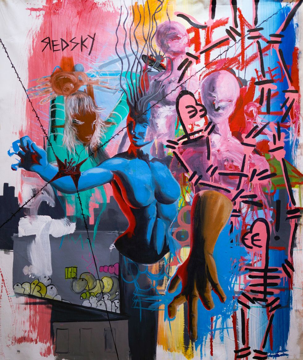 "This is the first time that I've actually shown works where I've mixed mediums," Lee said. "There's this one painting in particular called I'll Paint The Sky Red For You, and it's a regurgitation of everything that I ever wanted to put on a painting and conceptualize. I decided to do it all in this one painting with pastel, standard oil paint, acrylic and even spray paint. It's interesting how it all blends together and still tells a story. It looks like chaos and madness, but it's actually a little bit calming because you know it makes sense to the artist."