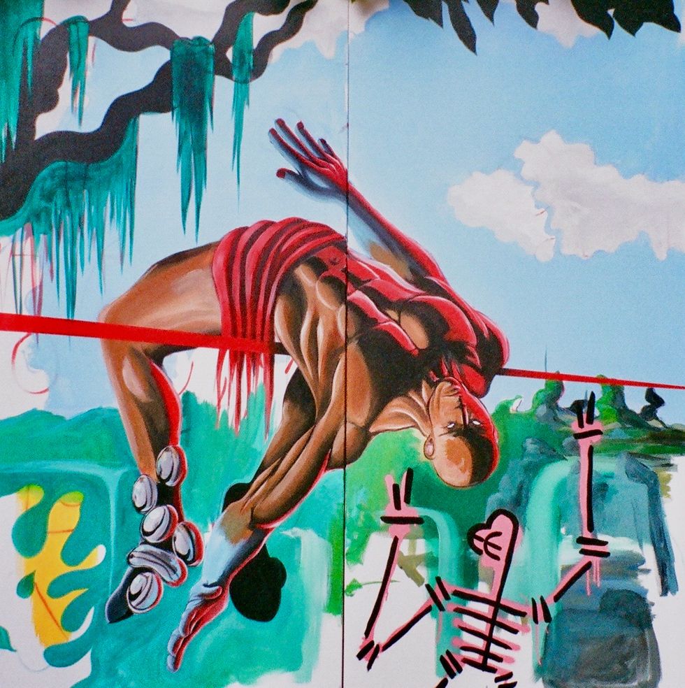 The exhibition offers an array of chromatic paintings fronting legendary Black historical figures aside sci-fi iconography — a commentary on the Black community's influence in today's modern, connected world. In a clash of traditional painting techniques, each piece serves to juxtapose the legacy of Black people in America with an optimistic outlook on the future, even amid the country's current sociopolitical division.