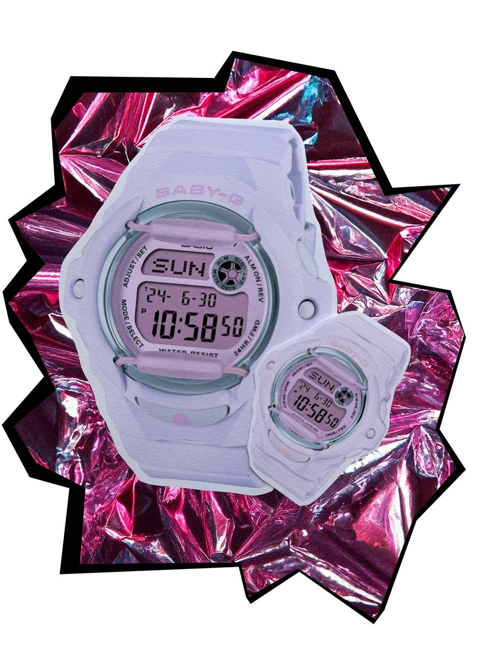 It tells time globally, has five alarms, a countdown timer, a stopwatch, and a full auto-calendar. So basically, it's a personal assistant in a sporty pink resin shell.